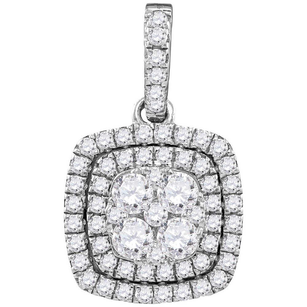 14kt White Gold Womens Round Diamond Square Cluster Pendant 7/8 Cttw