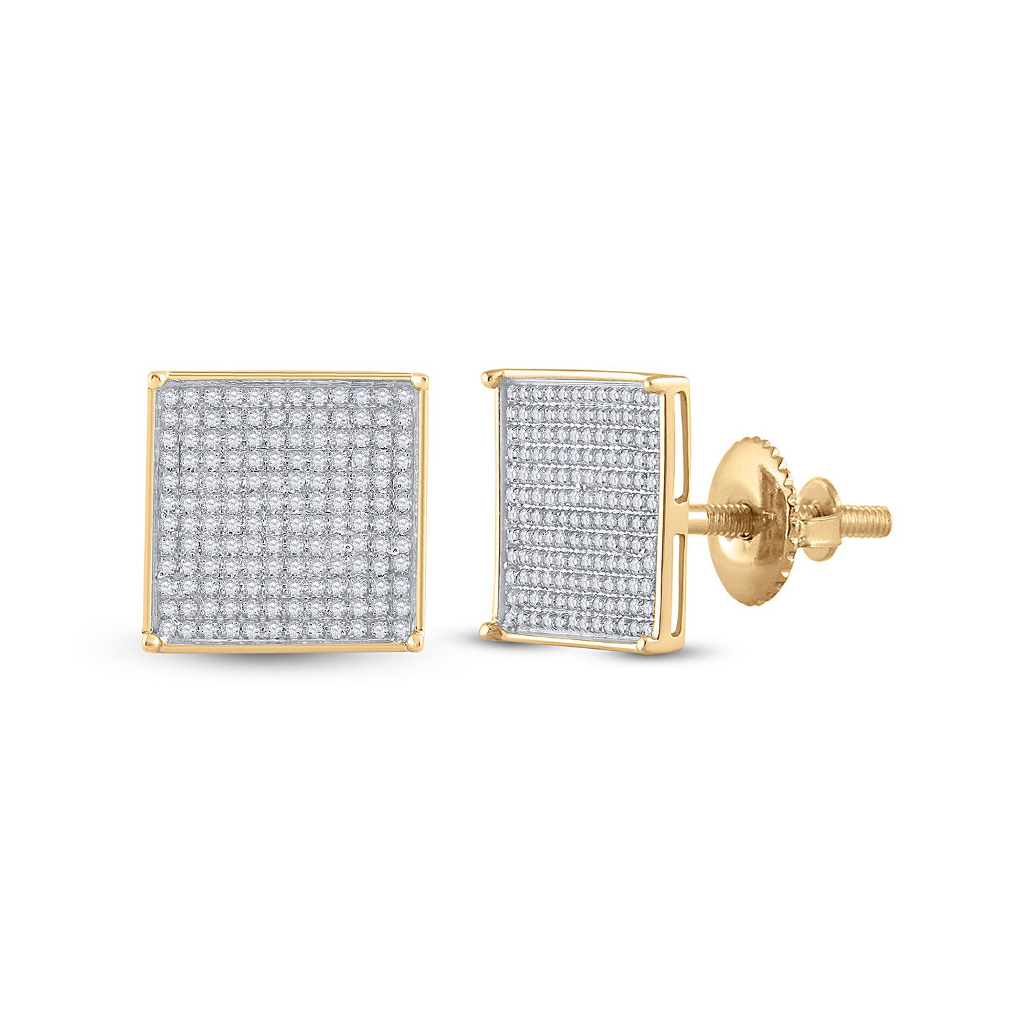 10kt Yellow Gold Womens Round Pave-set Diamond Square Cluster Earrings 7/8 Cttw