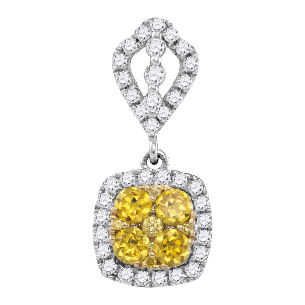 14kt White Gold Womens Round Yellow Diamond Square Cluster Pendant 7/8 Cttw