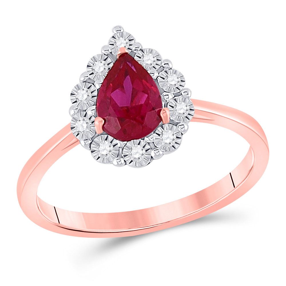 REF-36R2X - 7/8 CTW Womens Pear Ruby Diamond Teardrop Solitaire Ring 14kt Rose Gold - REF-36R2X