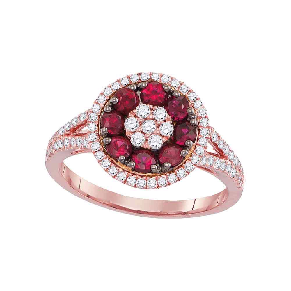 REF-109Y2N - 7/8 CTW Womens Round Ruby Diamond Flower Cluster Ring 18kt Rose Gold - REF-109Y2N