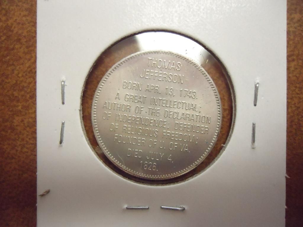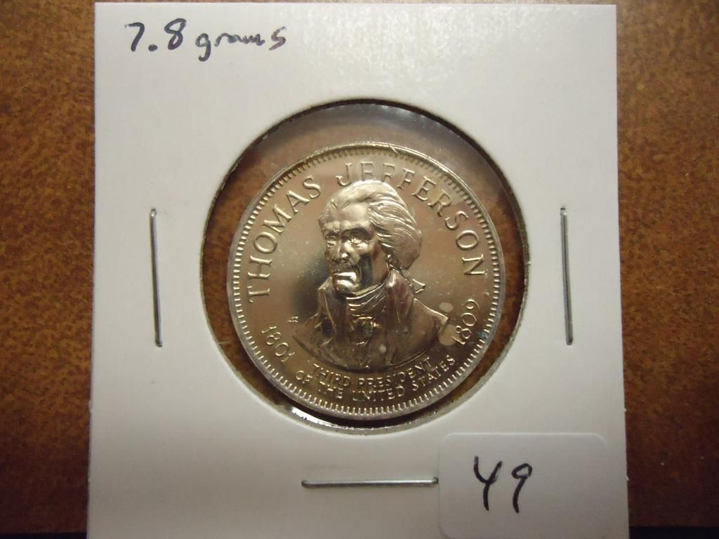 7.8 GRAM STERLING SILVER MEDAL THOMAS JEFFERSON