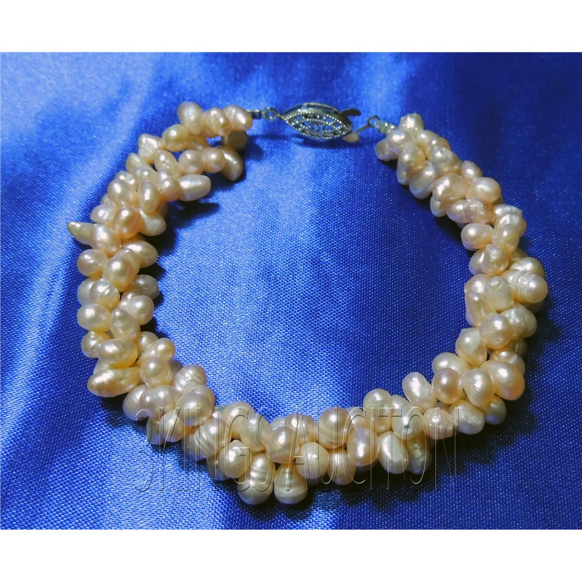 7--8 Inch 3-Strand Twisted Pearl Bracelet Brass Clasp P **|**|** 7--8 Inch 3-Strand Twisted Pearl Bracelet Brass Clasp Peach Philippines ; MSRP: $100