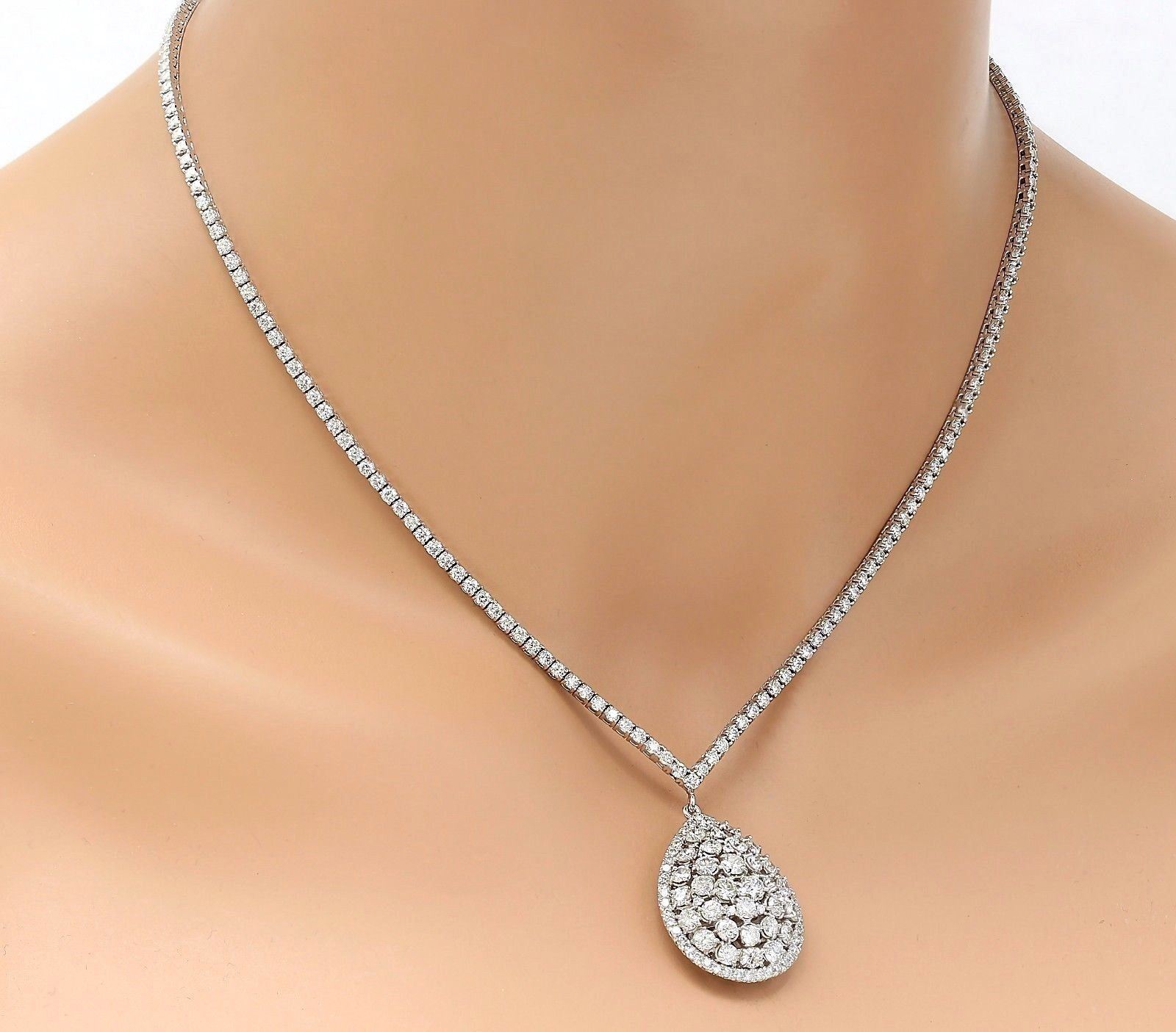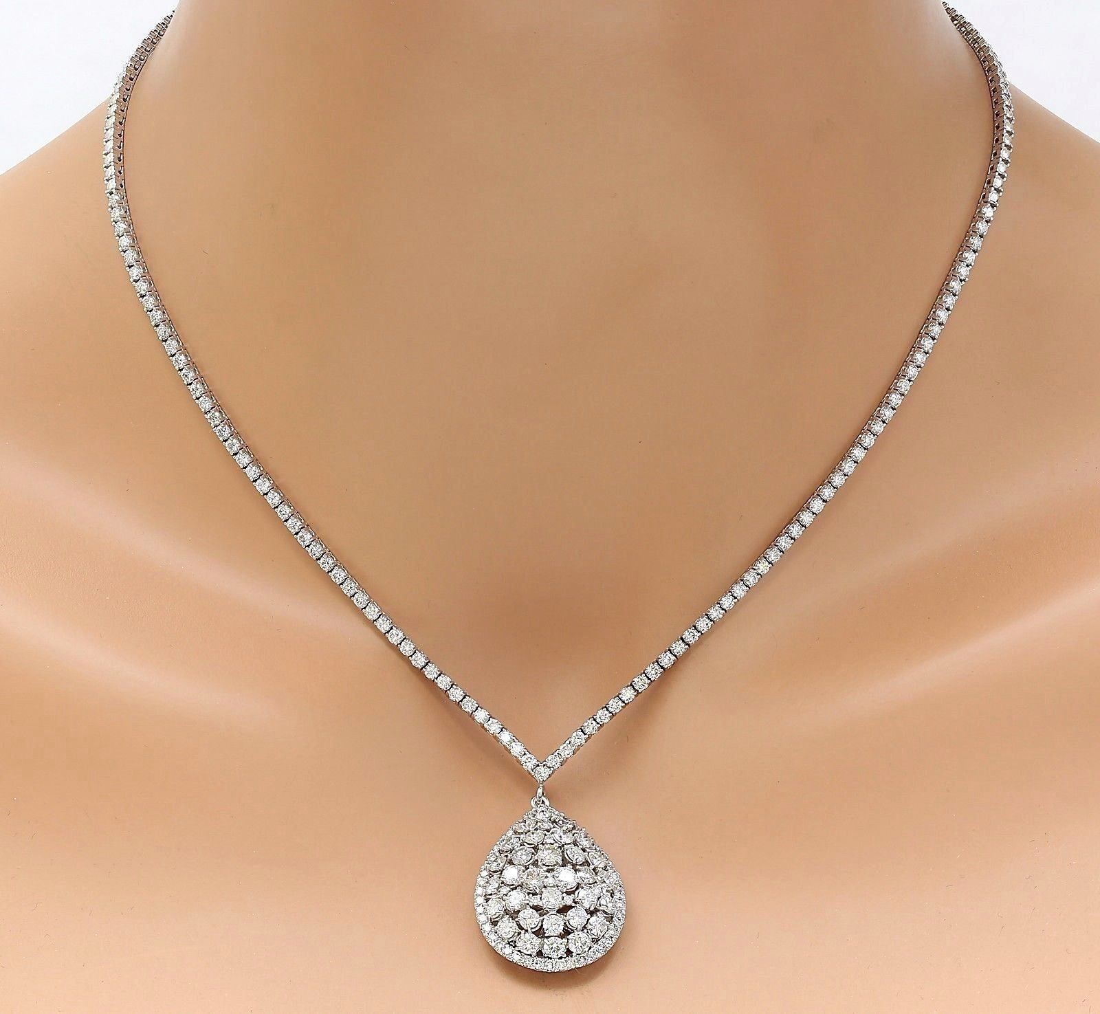 11.88 Carat Natural Diamond 18K Solid White Gold Necklace