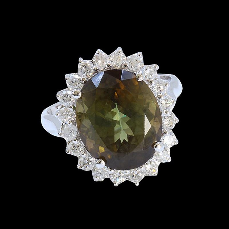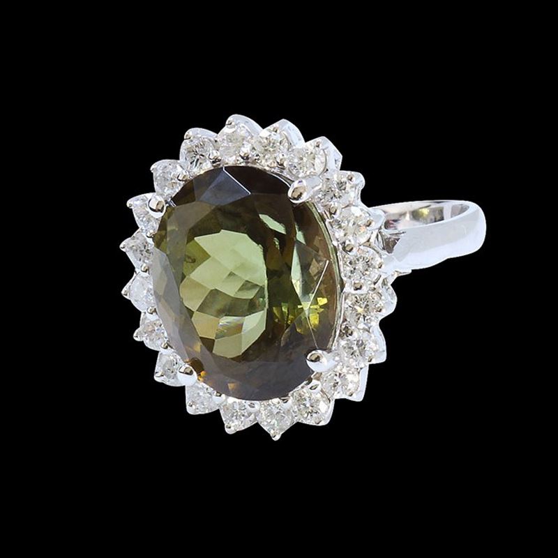 14K WHITE GOLD NATURAL TOURMALINE RING:4.65 GRAMS/DIAMOND:0.84CT/TOURMALINE:7.80CT/#GVR1034