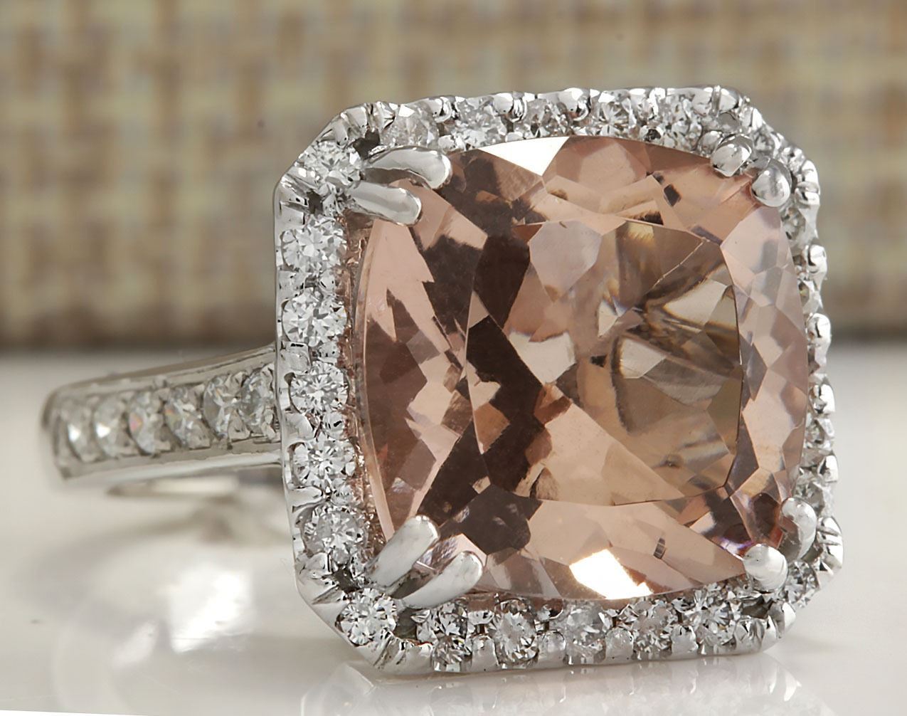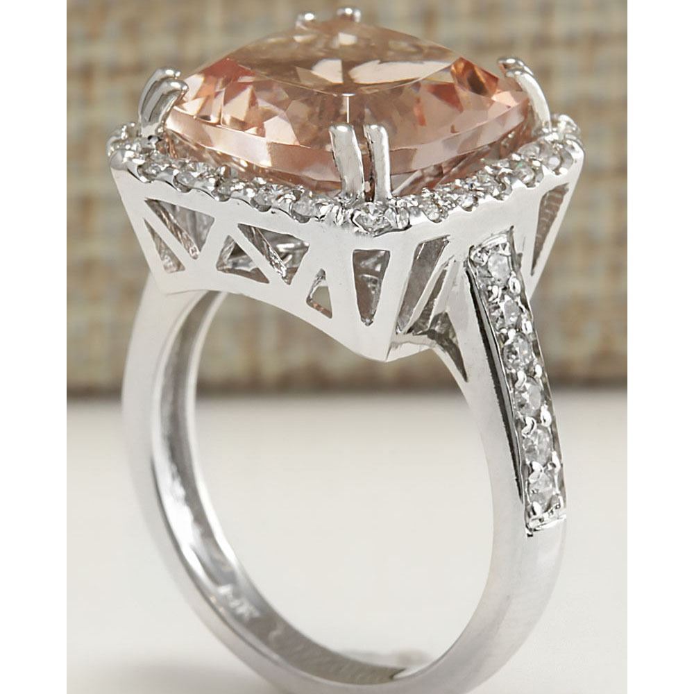 7.81 CTW Natural Peach Morganite And Diamond Ring In 14K Solid White Gold