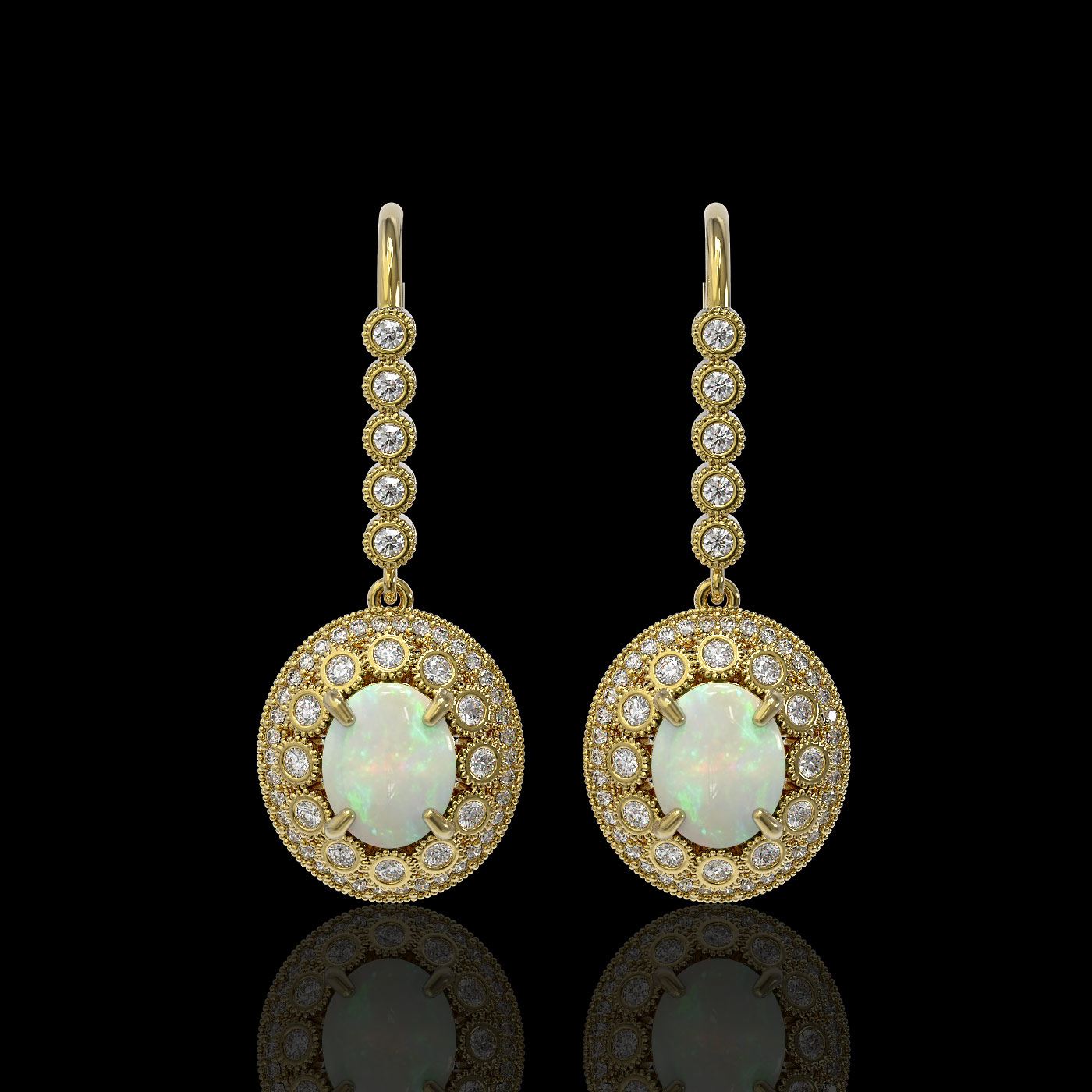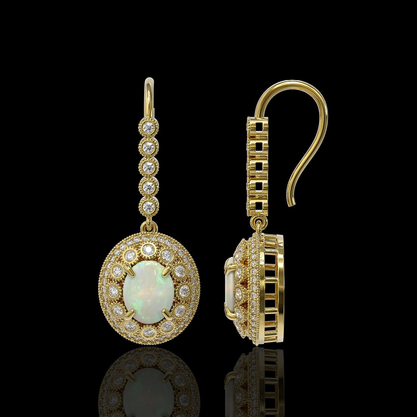 REF-256R8K - SKU: 43621 ---- 7.81 ctw Certified Opal & Diamond Victorian Earrings 14K Yellow Gold