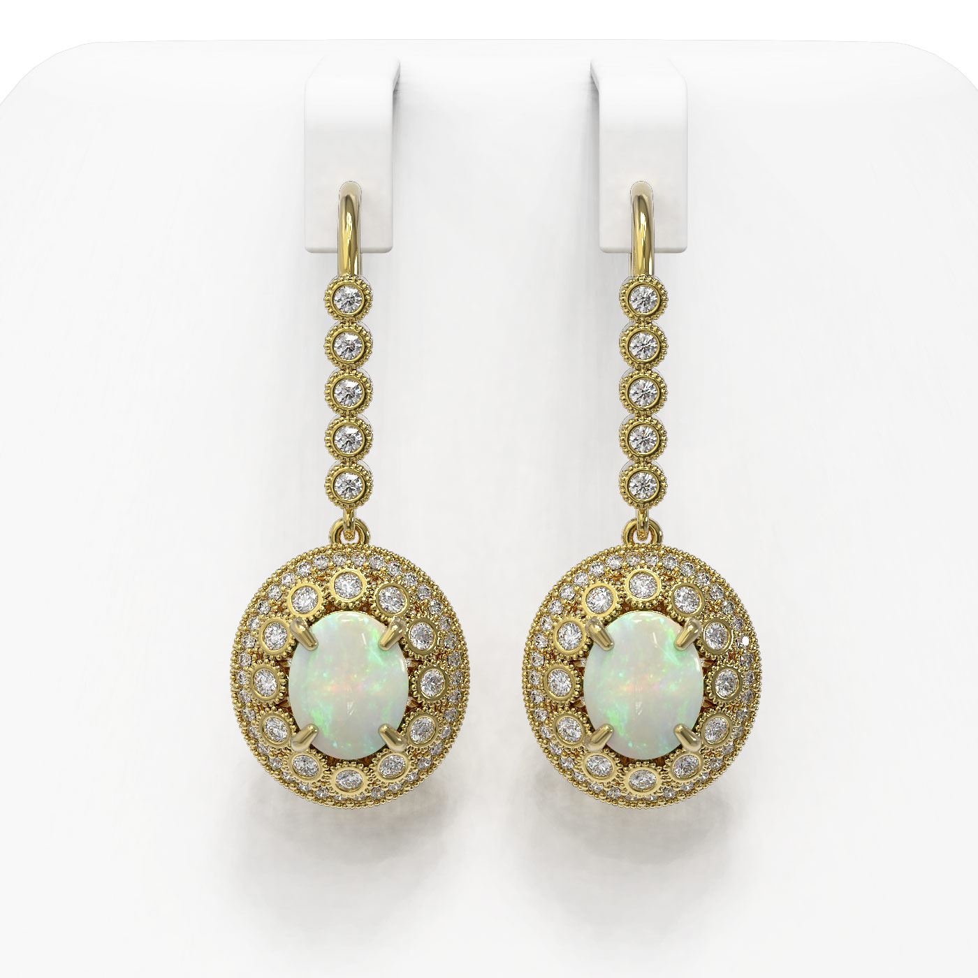 SKU: 43621 ---- 7.81 ctw Certified Opal & Diamond Victorian Earrings 14K Yellow Gold