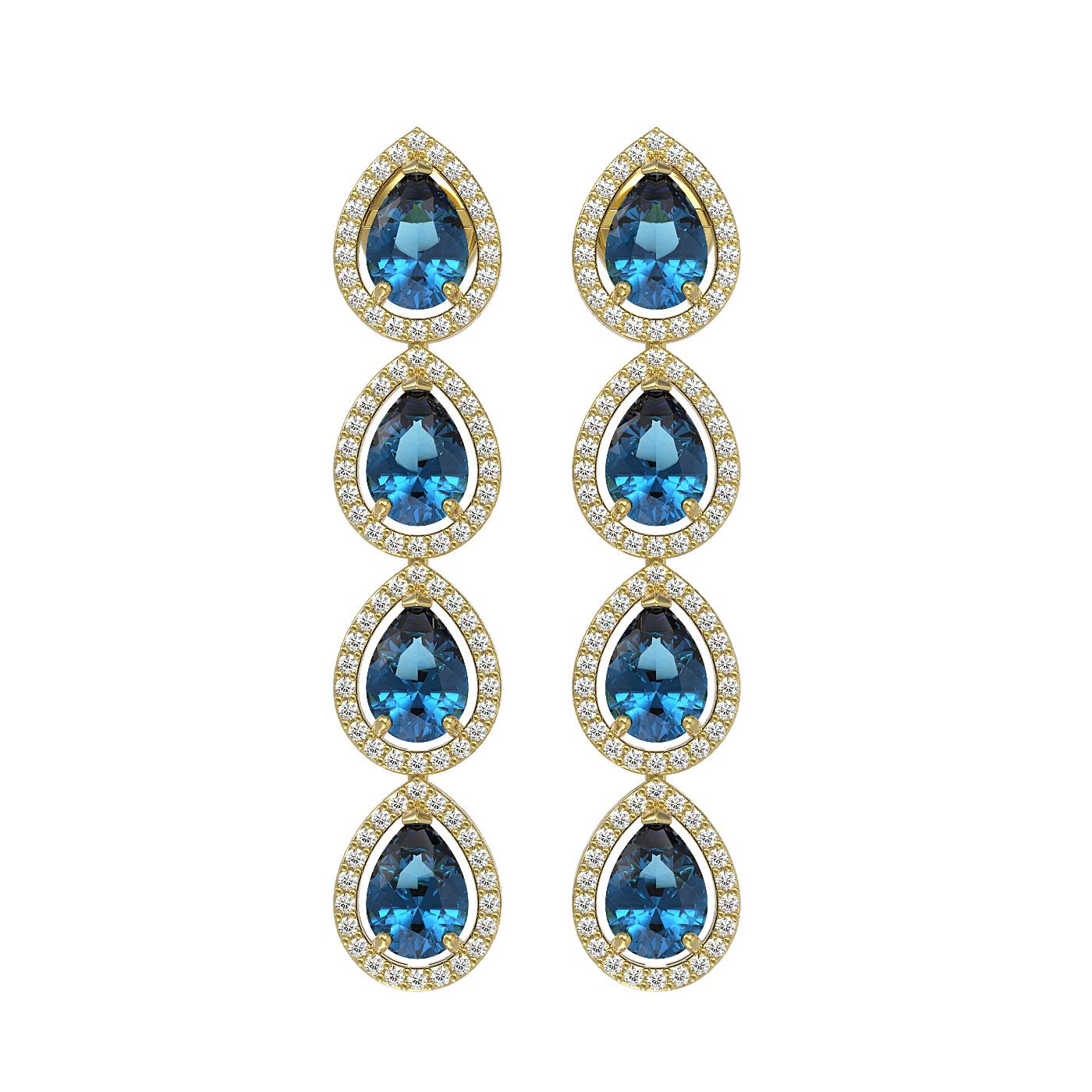REF-152F8M - SKU: 41176 ---- 7.81 ctw London Topaz & Diamond Micro Pave Halo Earrings 10k Yellow Gold