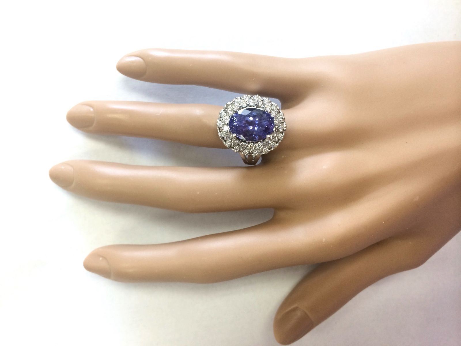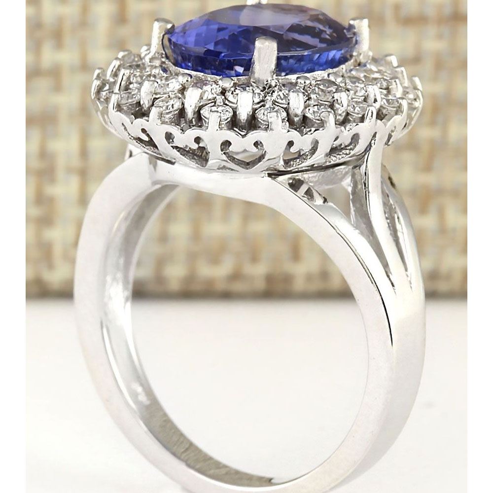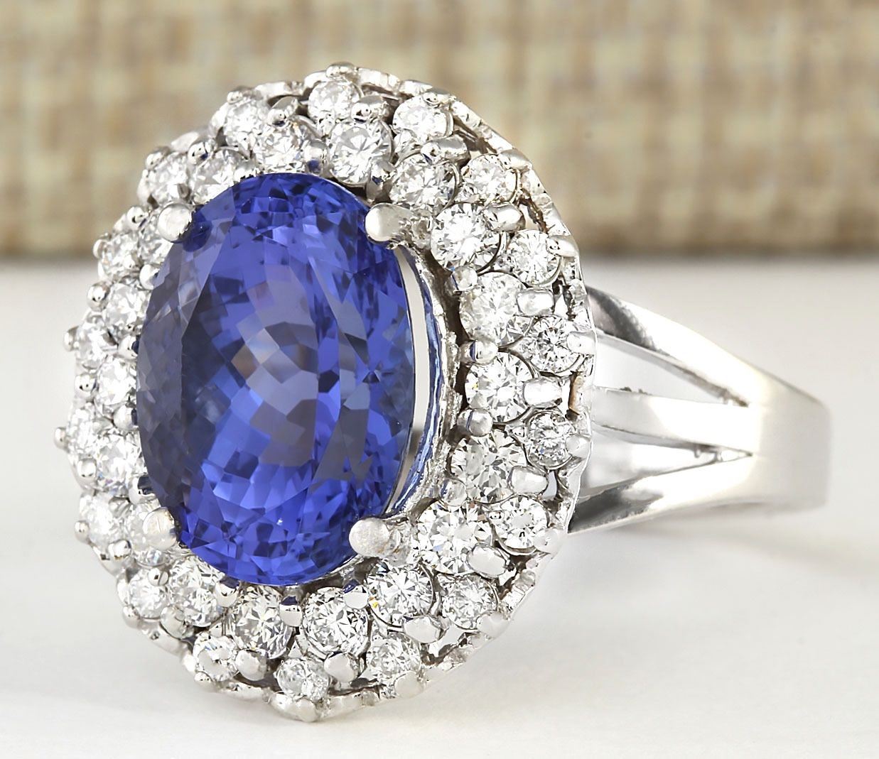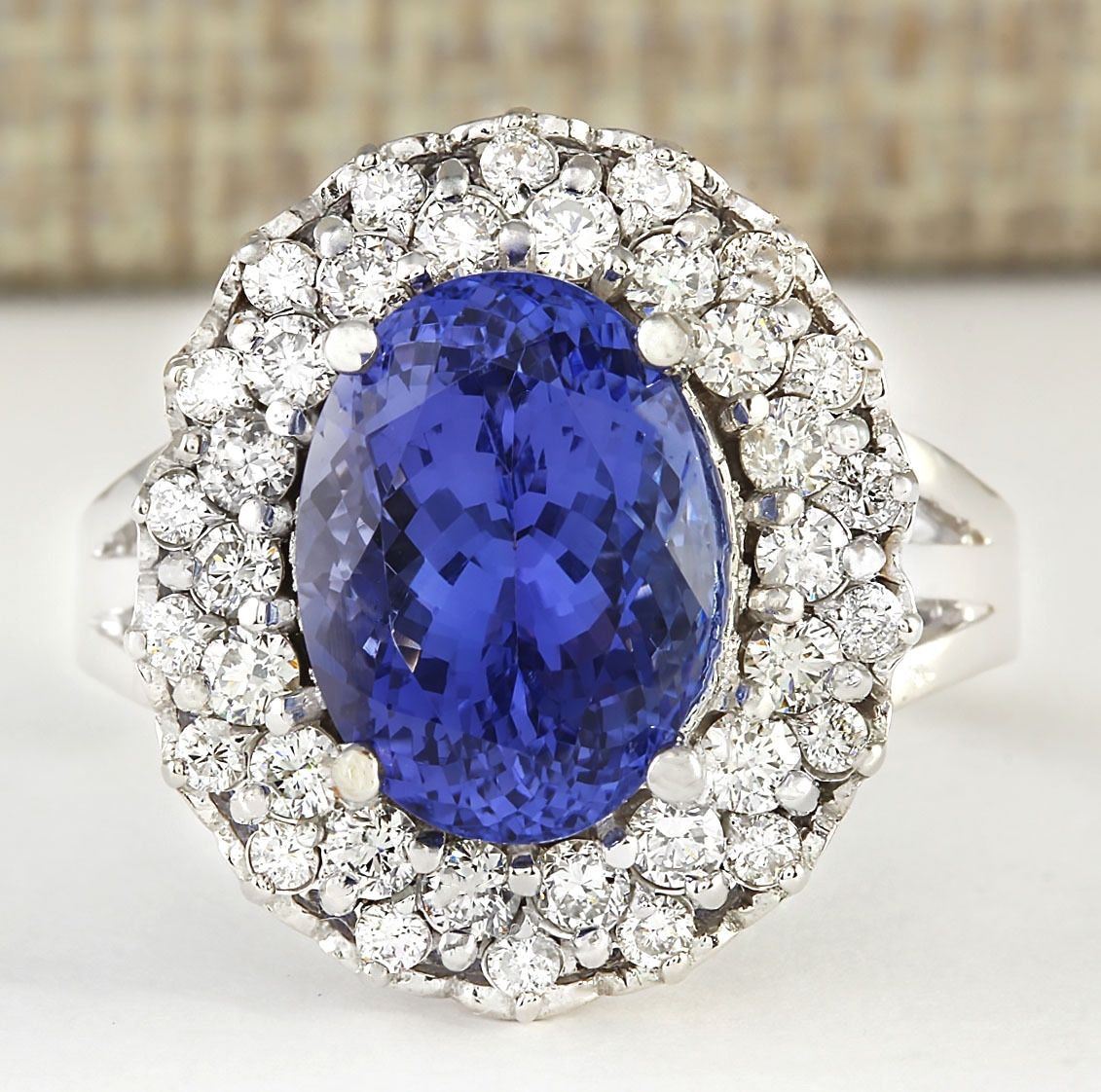 7.82 CTW Natural Blue Tanzanite And Diamond Ring 14k Solid White Gold