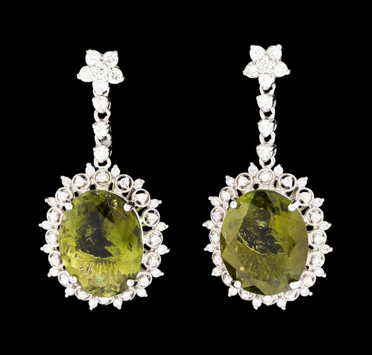 One pair of earrings : 14KT white gold weighing 5.12gm containing tourmaline center stones with a total weight of 7.82ct and side diamonds weighing 0.60ctw.