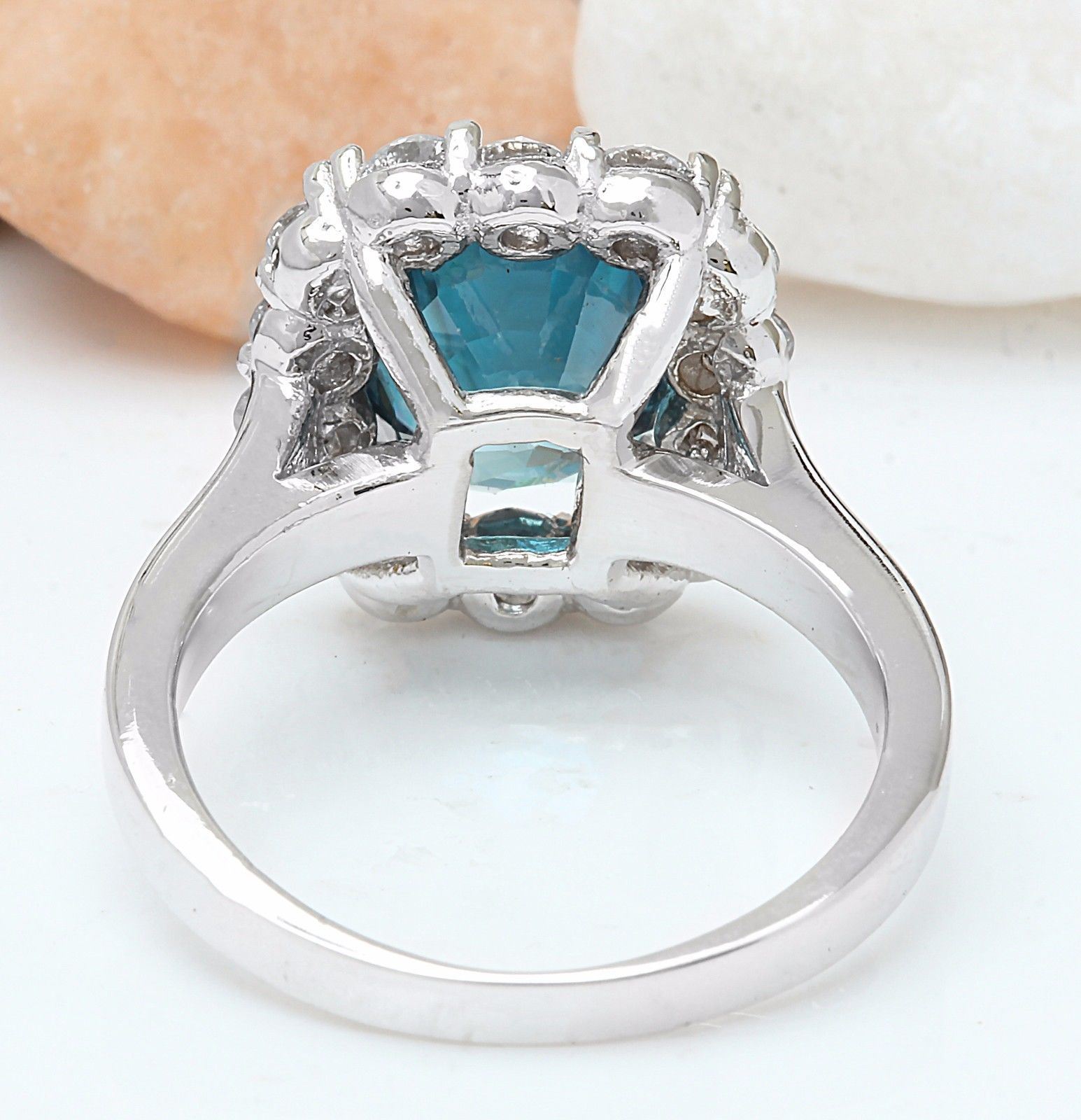 7.84 Carat Natural Zircon 14K Solid White Gold Diamond Ring