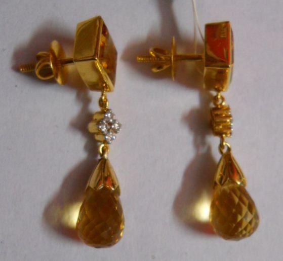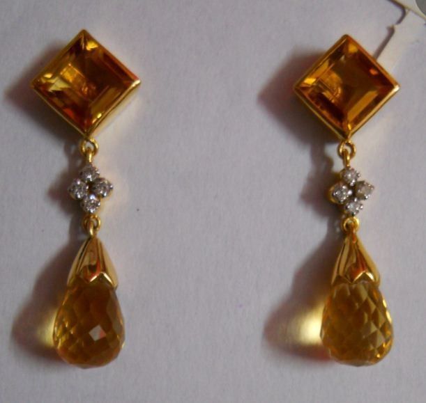 Earring of total weight 7.842g in 18kt 5.12g Gold ,Diamond:0.2 Ctw and Citrine:13.41 Ctw
