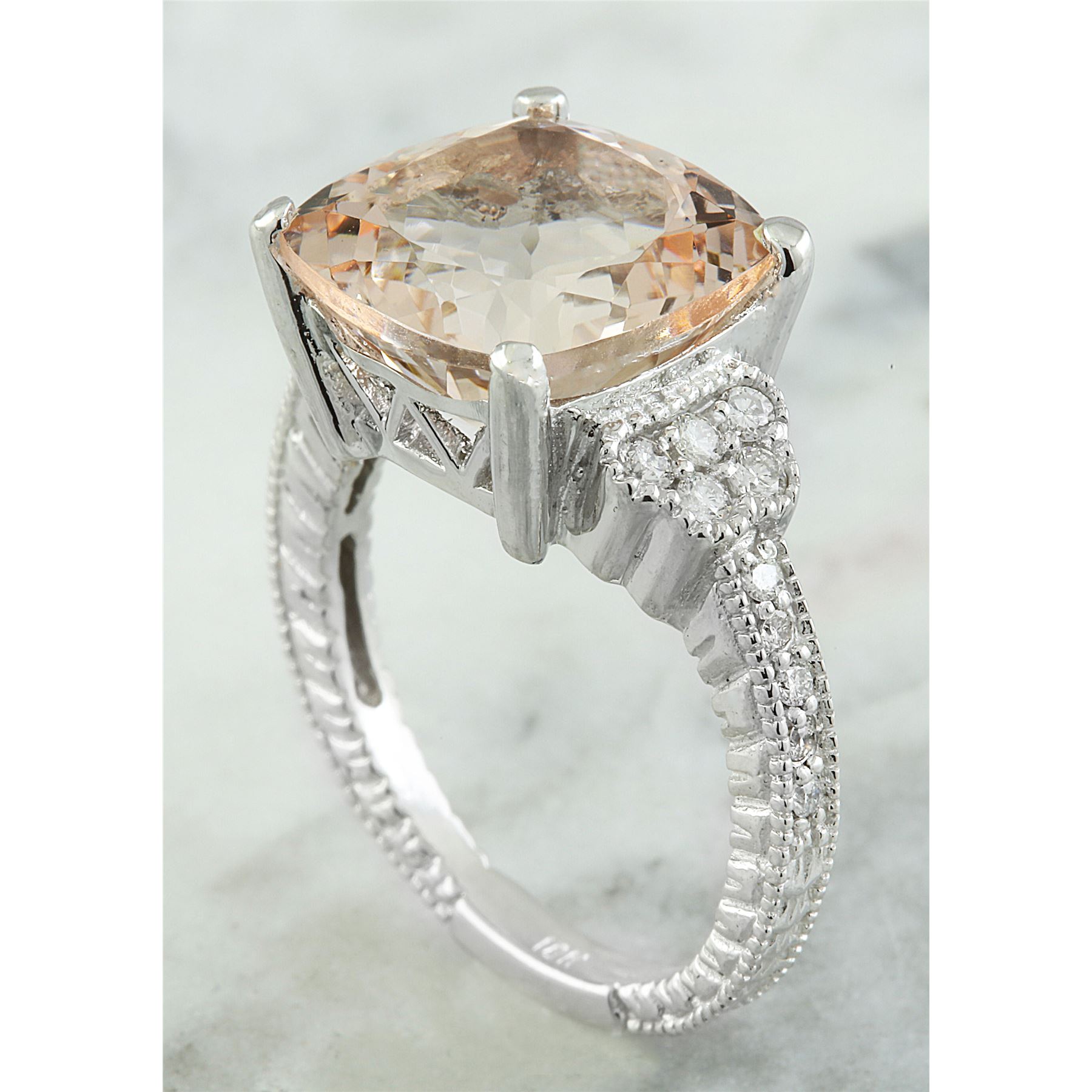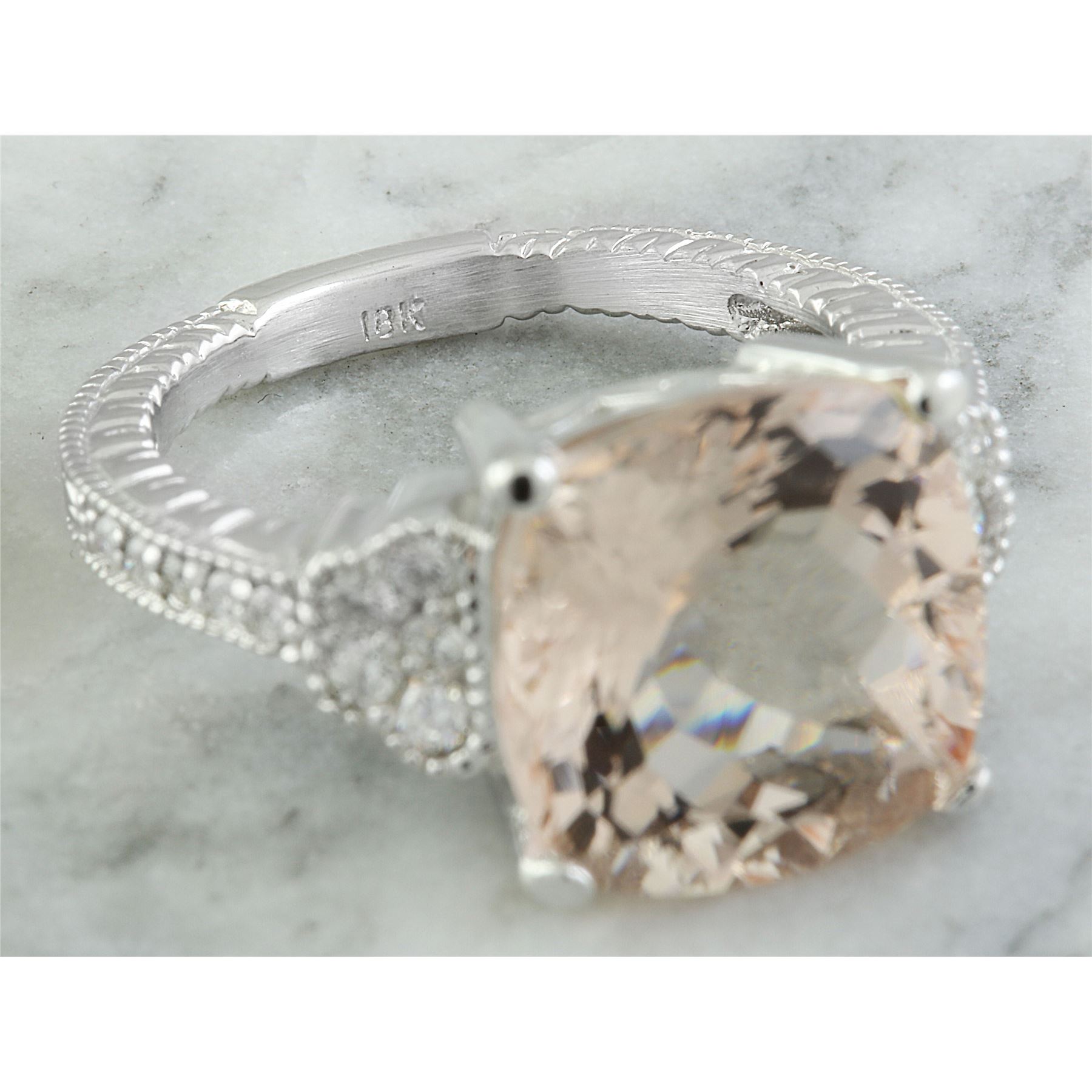 7.85 CTW Morganite 18K White Gold Diamond Ring
