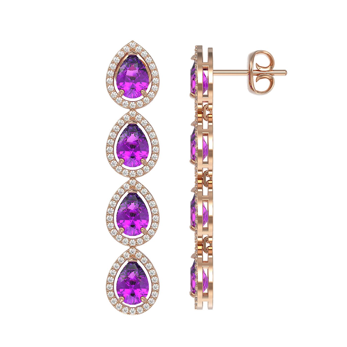 SKU: 41178 ---- 7.85 ctw Amethyst & Diamond Micro Pave Halo Earrings 10k Rose Gold