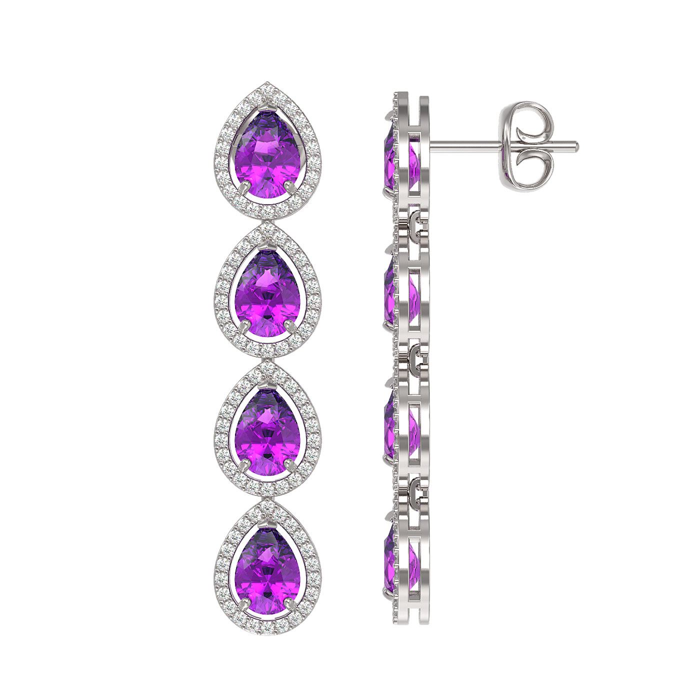 REF-152N8F - SKU: 41177 ---- 7.85 ctw Amethyst & Diamond Micro Pave Halo Earrings 10k White Gold