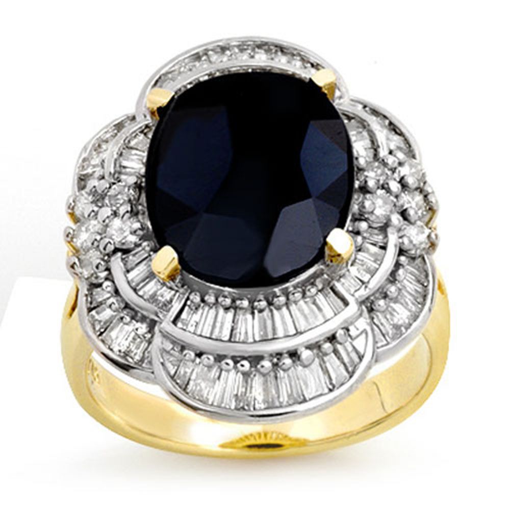 REF-135H5R - SKU: 13076 ---- 7.85 ctw Blue Sapphire & Diamond Ring 14k Yellow Gold