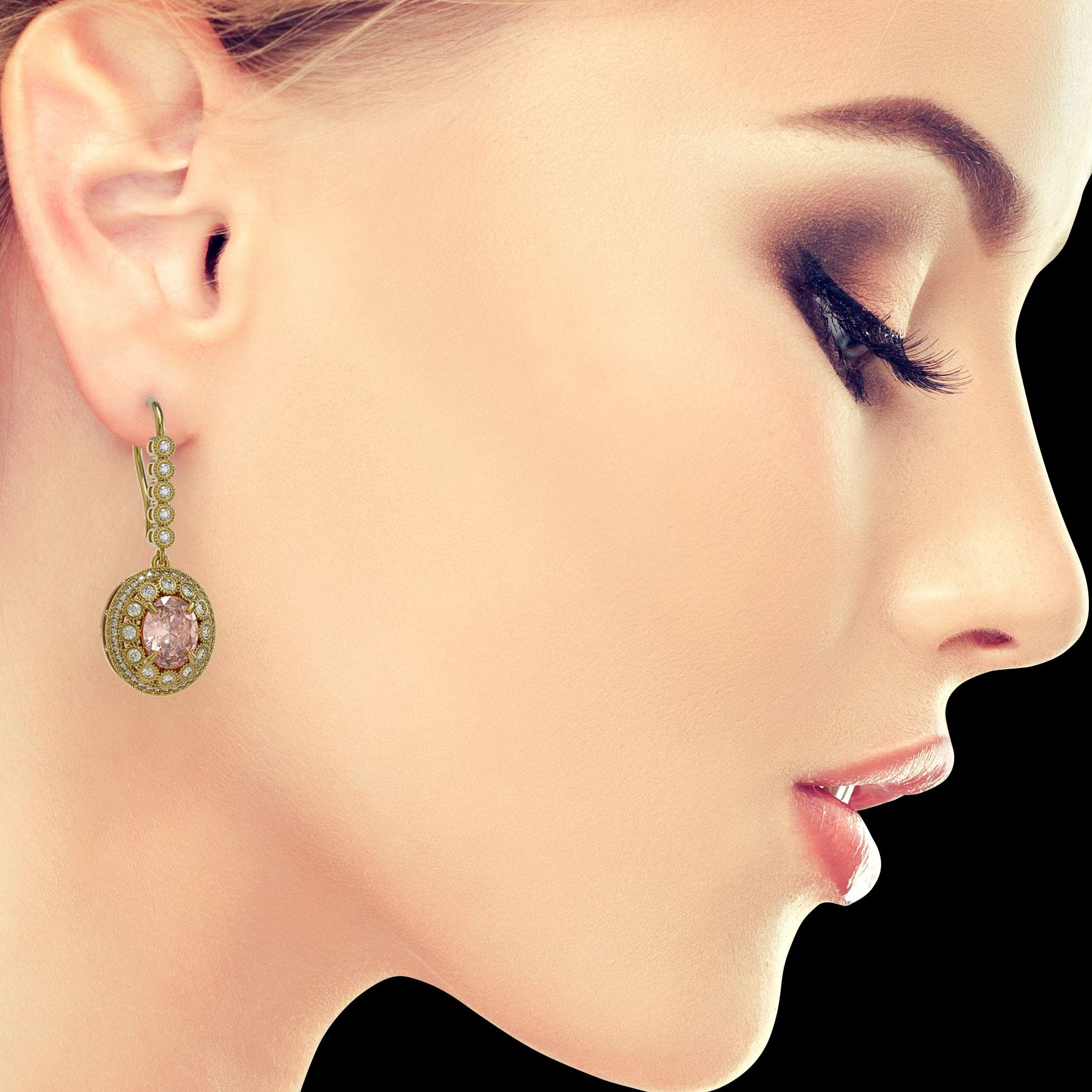 REF-317F5M - SKU: 43627 ---- 7.85 ctw Morganite & Diamond Victorian Earrings 14K Yellow Gold