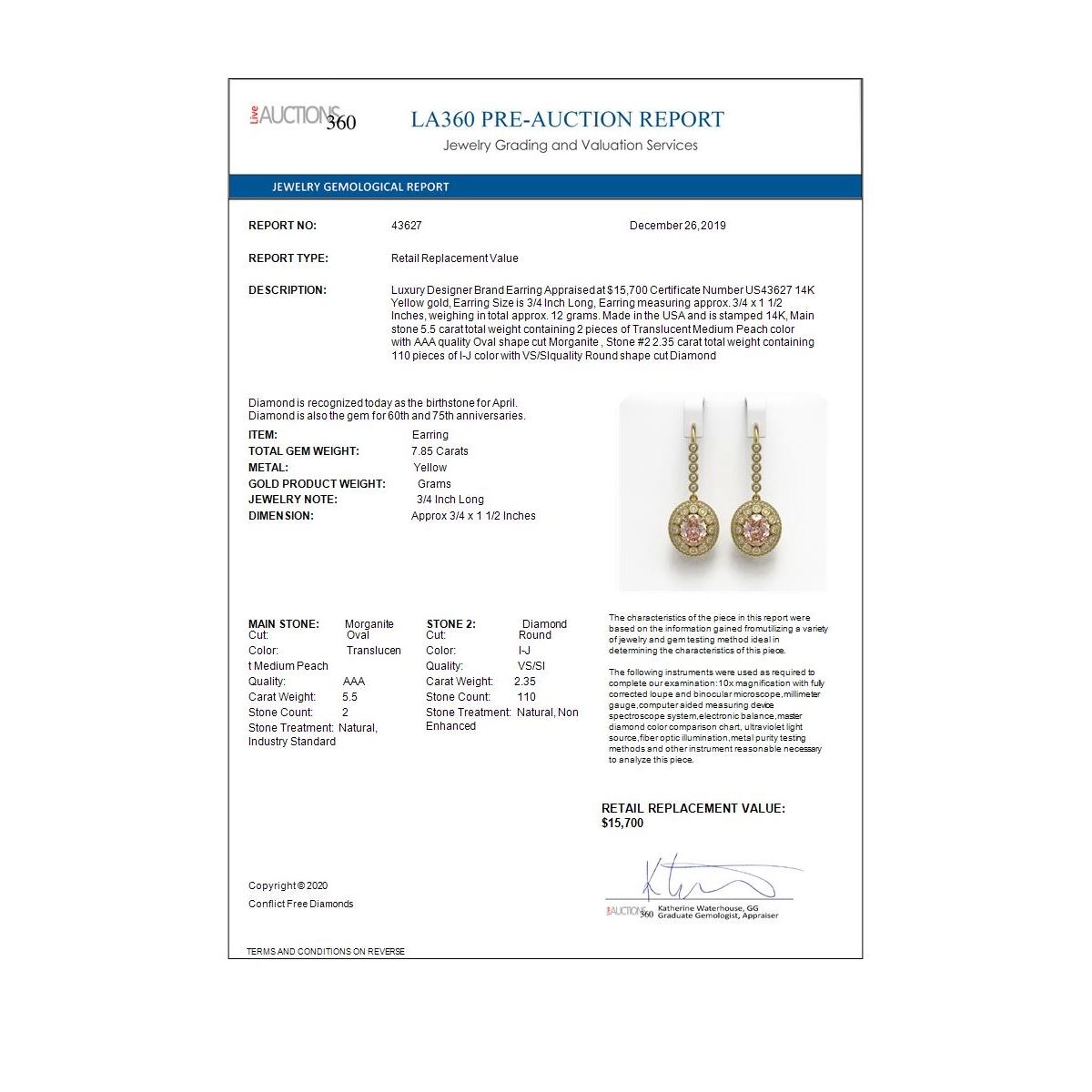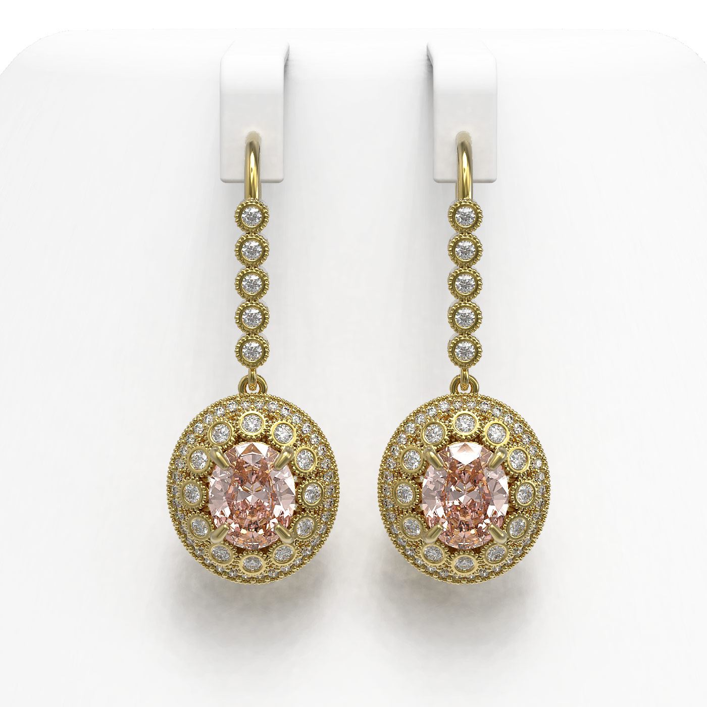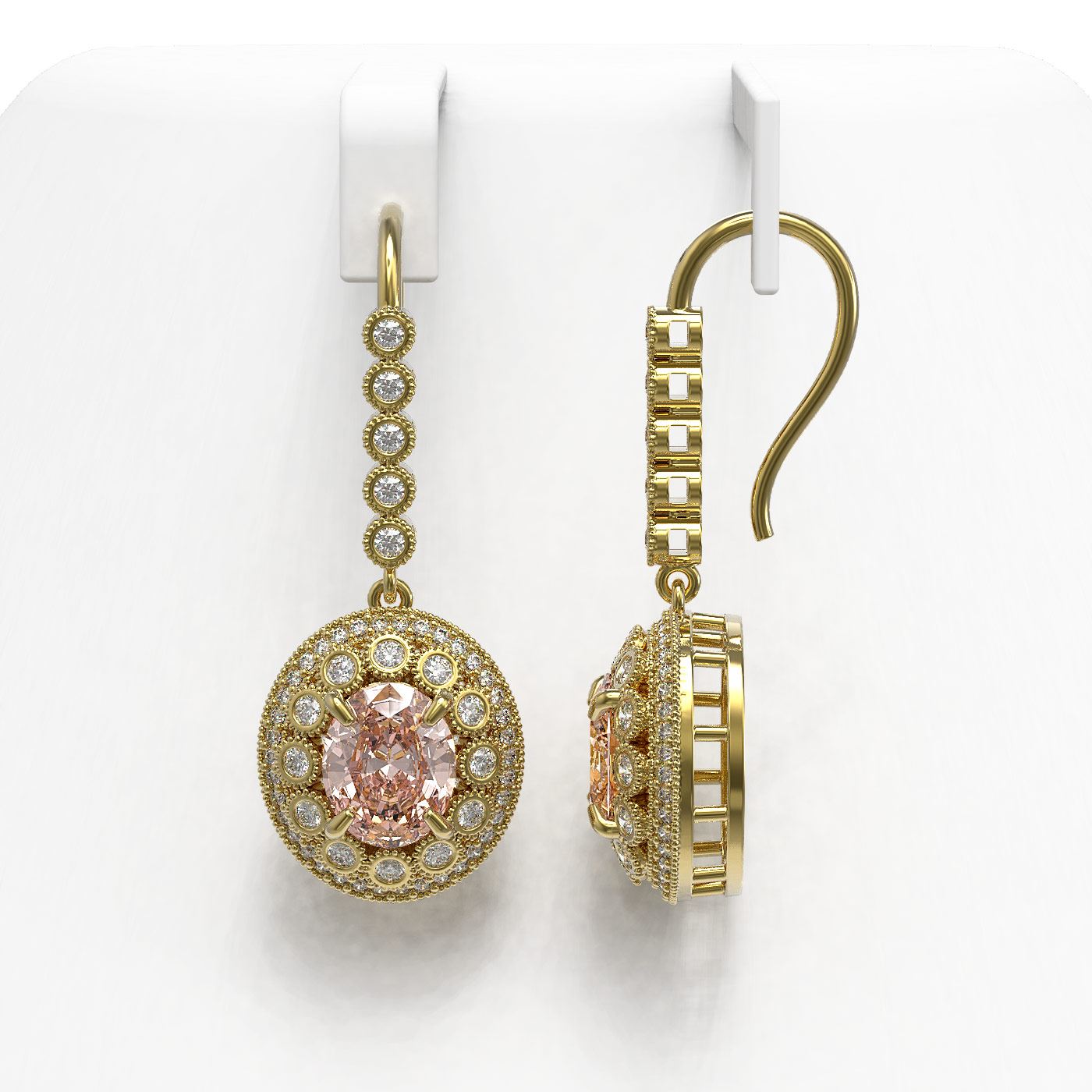 REF-317K5Y - SKU: 43627 ---- 7.85 ctw Morganite & Diamond Victorian Earrings 14K Yellow Gold