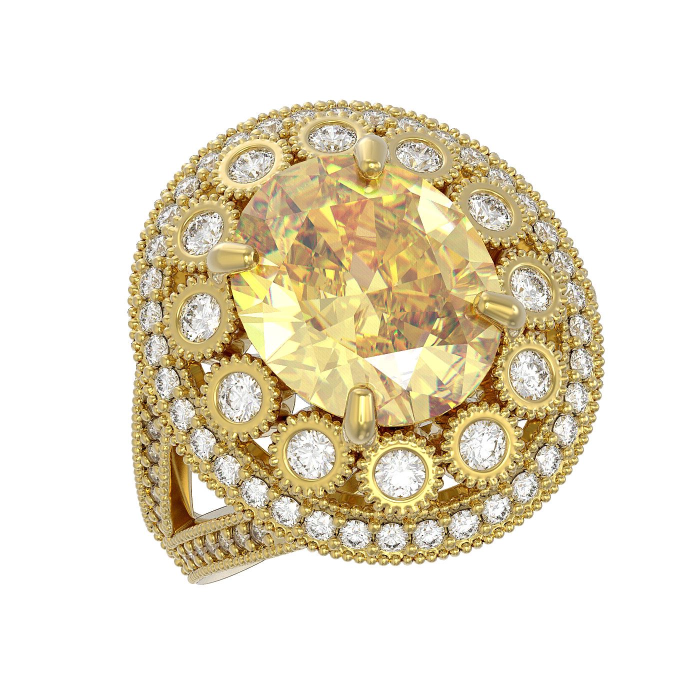 REF-170H9R - SKU: 43753 ---- 7.87 ctw Canary Citrine & Diamond Victorian Ring 14K Yellow Gold