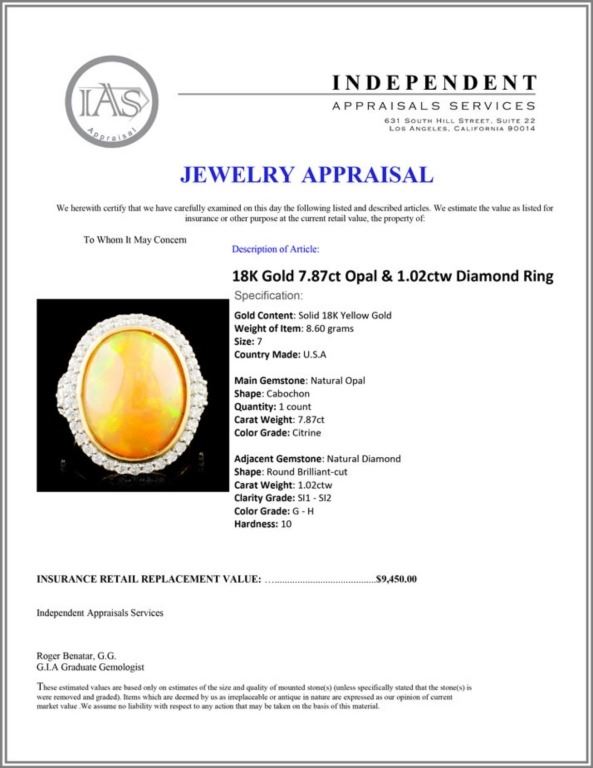 Regarding Appraised Jewelry and Loose Stones - Auctionfarm sends them out to a third party for Retail Replacement Value Appraisals, which are the most common. These types of evaluations are written for insurance needs. This would be the cost to replace the jewelry with an item of equal quality and kind, considered to be the current market price or the replacement value. This type of appraisal is done to protect you in the event of damage or loss of a valuable item. Our appraisals are conducted by independent 3rd Party appraisal firms that utilizes Certified GIA Gemologist. Appraisals should be used for verification of gemstone and/or metal weight, size, and grade only, not actual value. Appraisal value should be considered for insurance purposes only, not actual value, as price varies greatly from retail locations thru out the world. Items should not be purchased with the expectation to resell for appraisal price, or for profit.