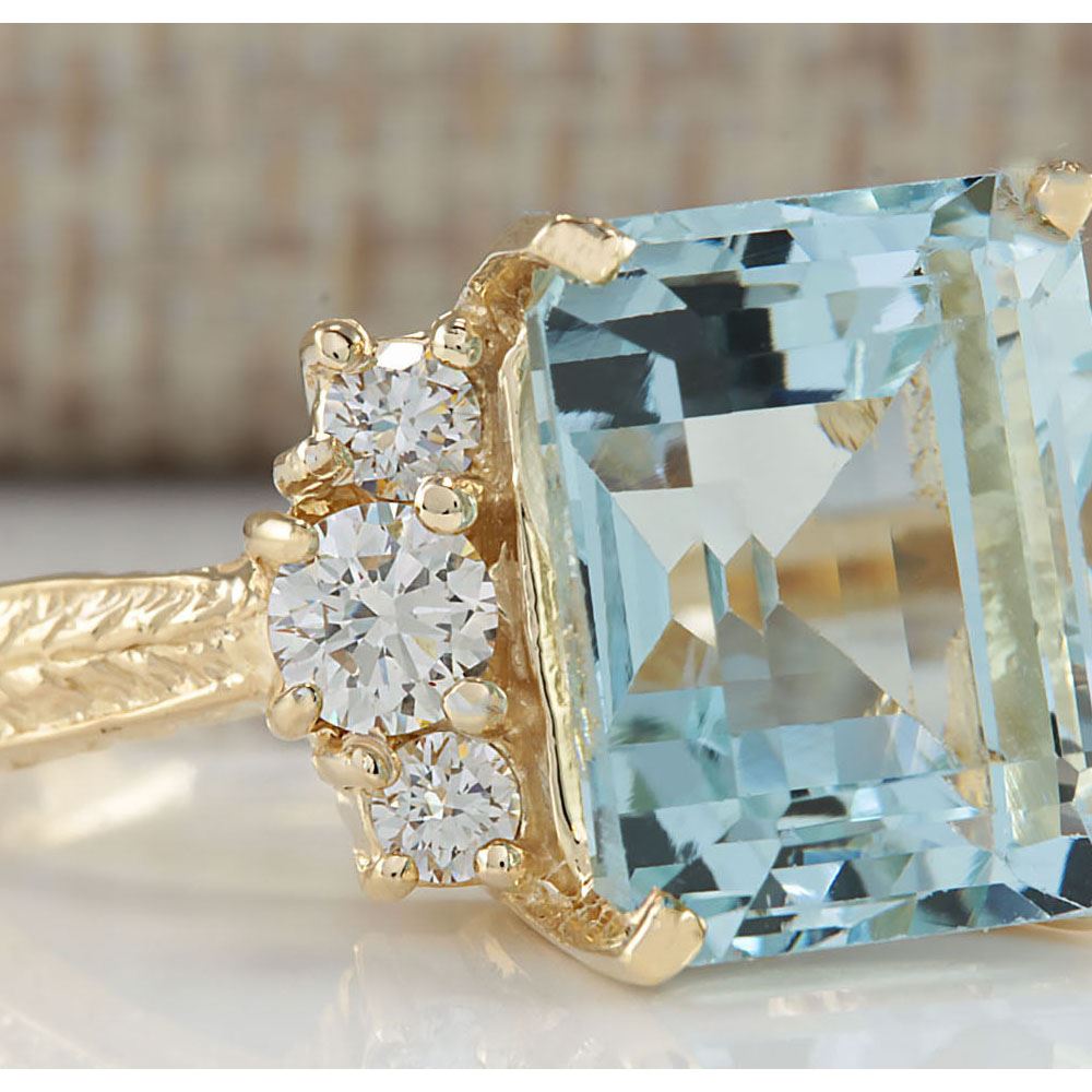 7.88 CTW Natural Blue Aquamarine And Diamond Ring 14K Solid Yellow Gold