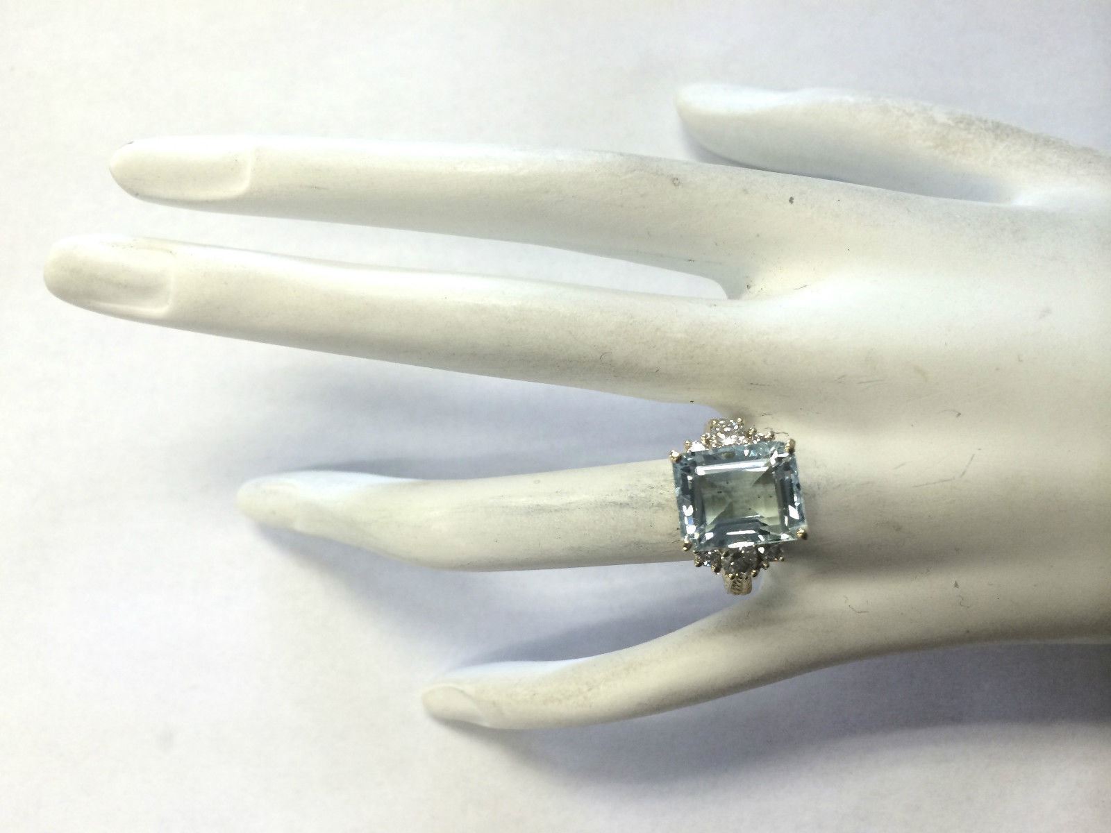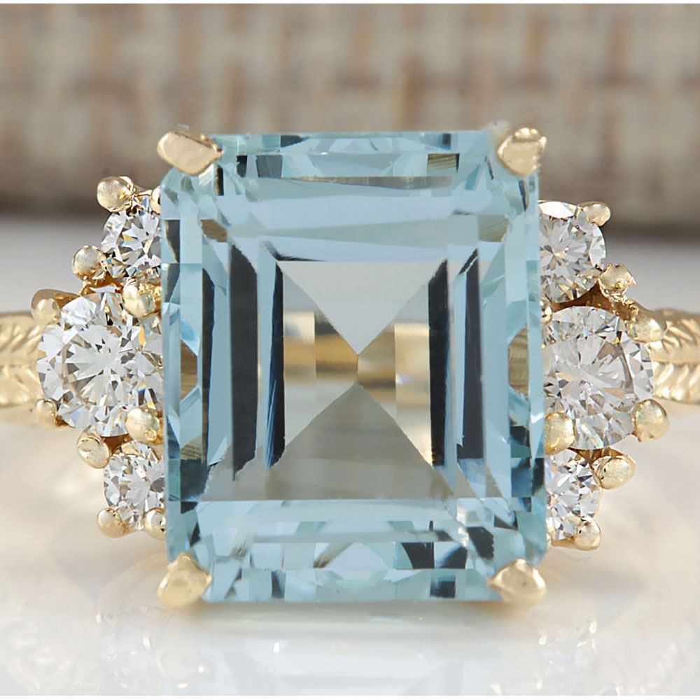 7.88 CTW Natural Blue Aquamarine And Diamond Ring 18K Solid Yellow Gold