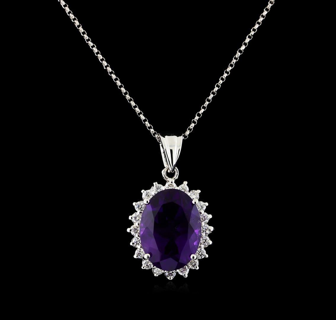 One Pendant With Chain featuring: 14KT White Gold weighing 4.2 grams containing one Amethyst center stone with a total weight of 7.88ct and Diamonds with a total weight of 0.64ct.