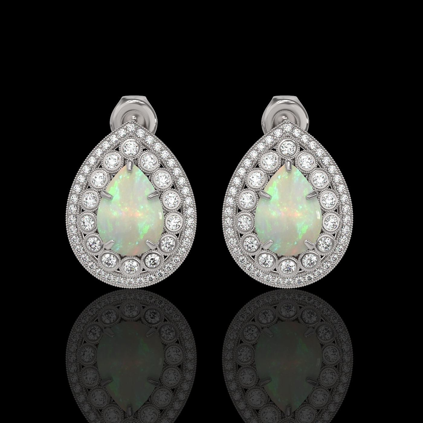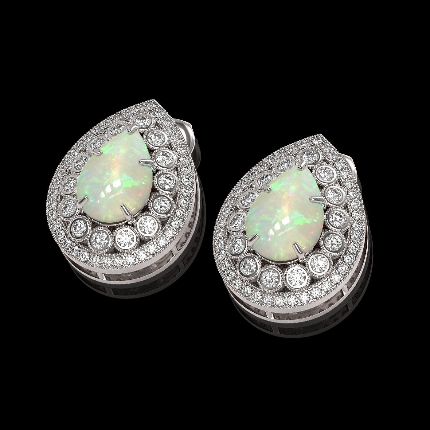 REF-244Y2X - SKU: 43190 ---- 7.88 ctw Certified Opal & Diamond Victorian Earrings 14K White Gold