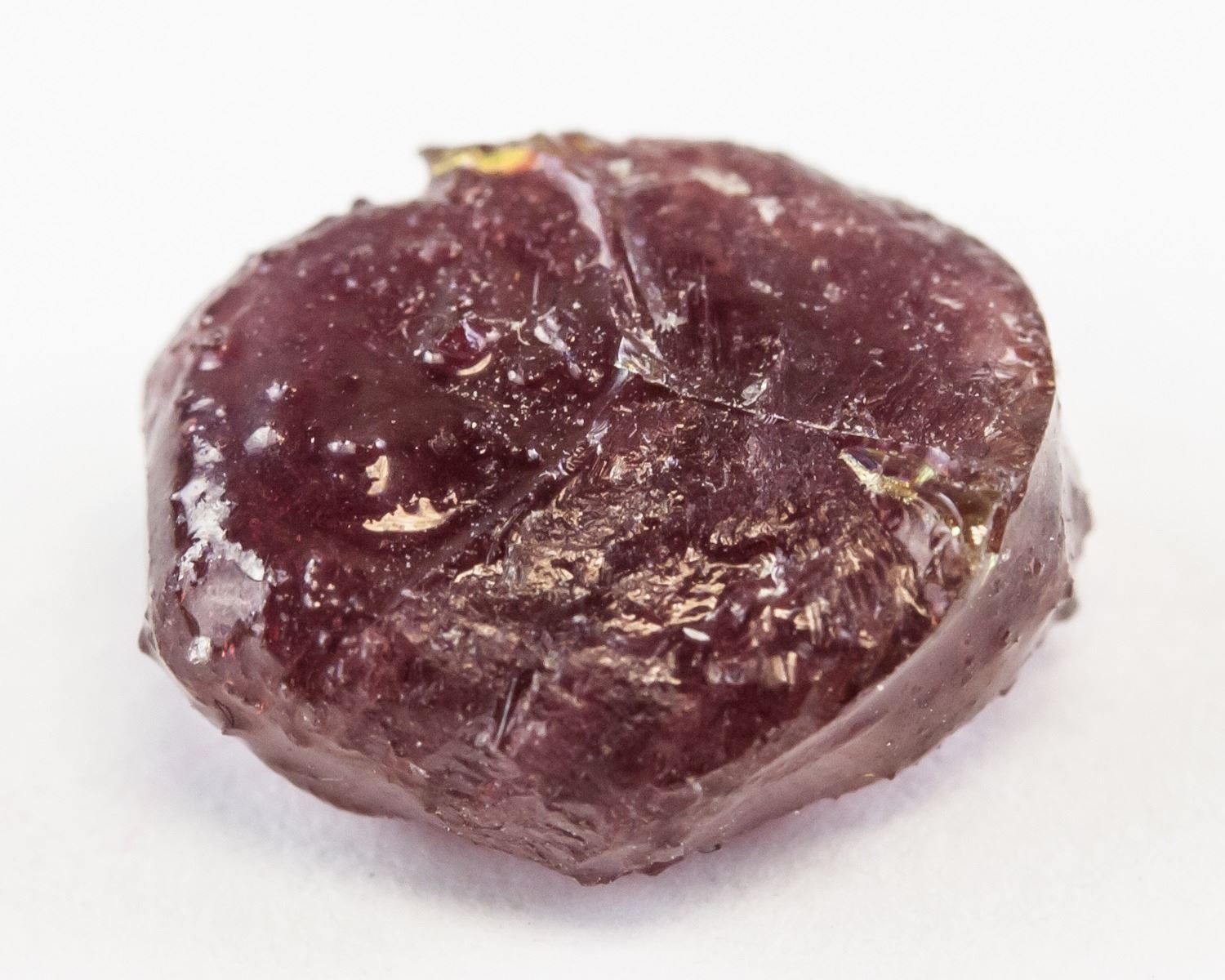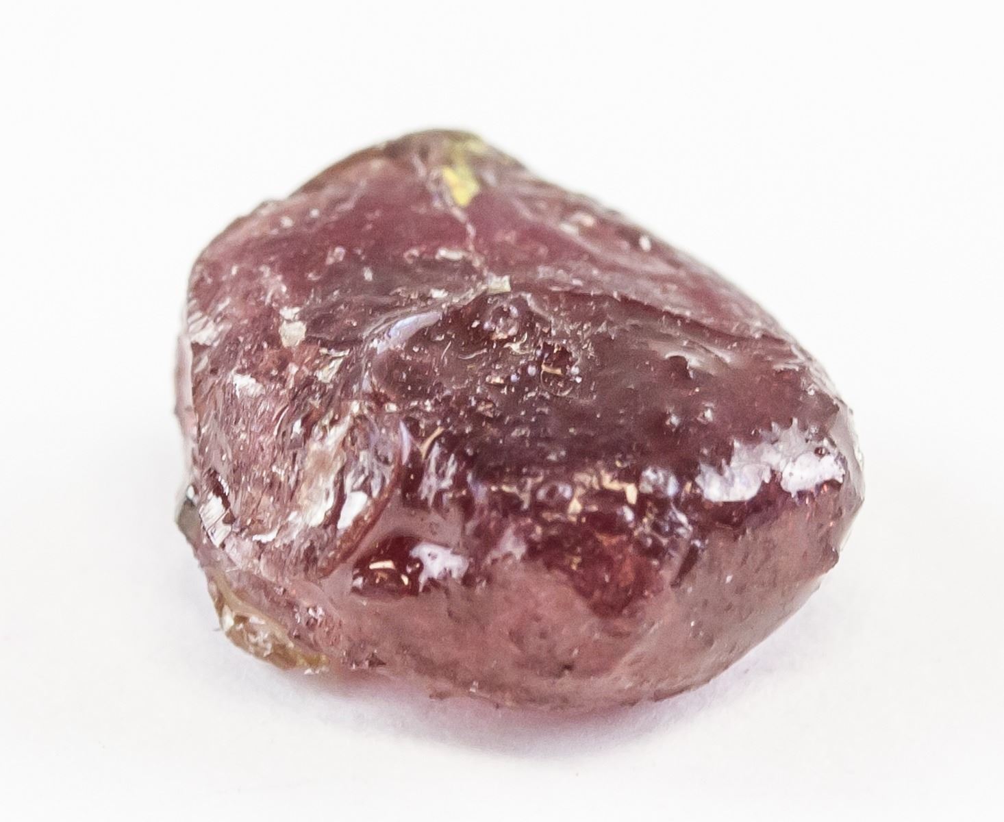One (1) 7.90 ct raw uncut red ruby gemstone. 11.65 x 11.13 mm