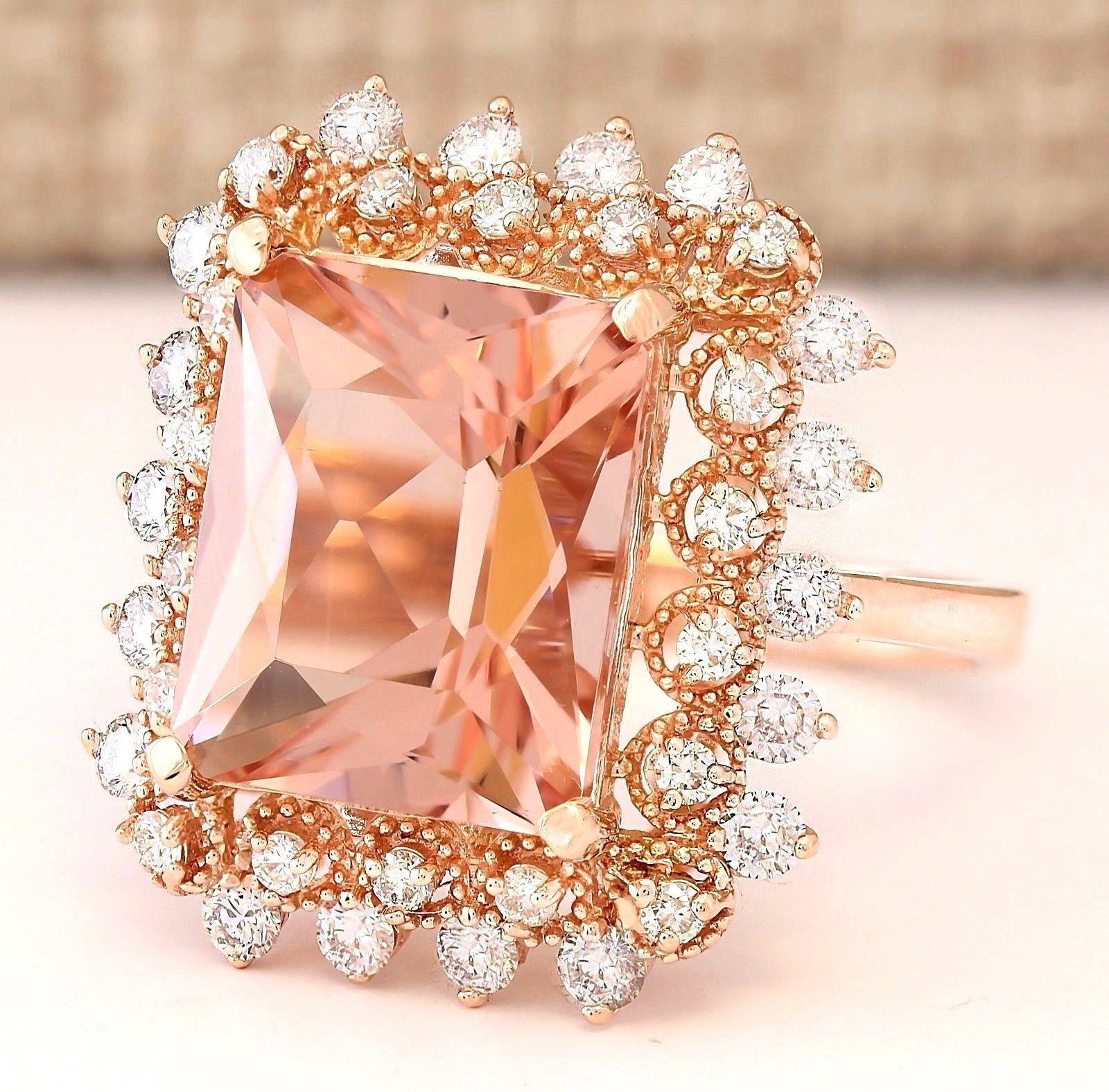 7.92 CTW Natural Morganite And Diamond Ring In 14k Rose Gold