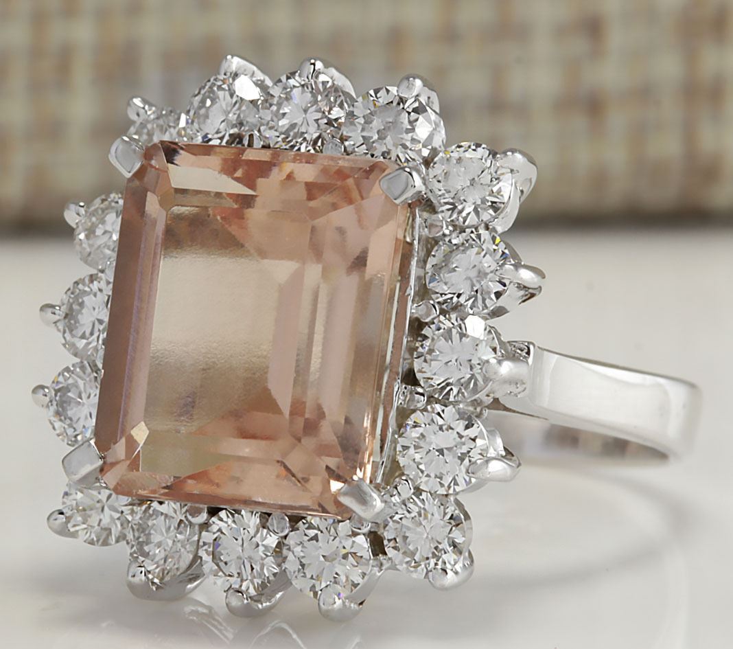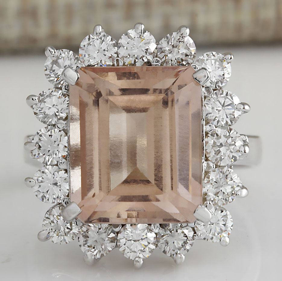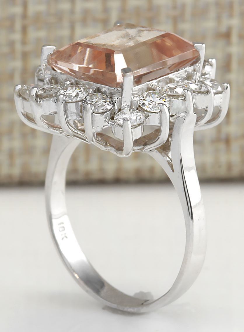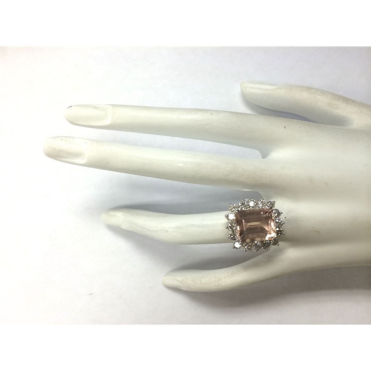 Stamped: 14K Ring Size: 6.75 Total Ring Weight: 9.4Grams Diamond Weight: Total natural diamond weight is 1.62carat. SI1-SI2 clarity / G-H color Gemstone Weight: Total Natural Peach Morganite Weight is 6.30ctw (Measures: 12.05x10.49mm) Face Measures: 19.00x17.39mm SKU: [704165]