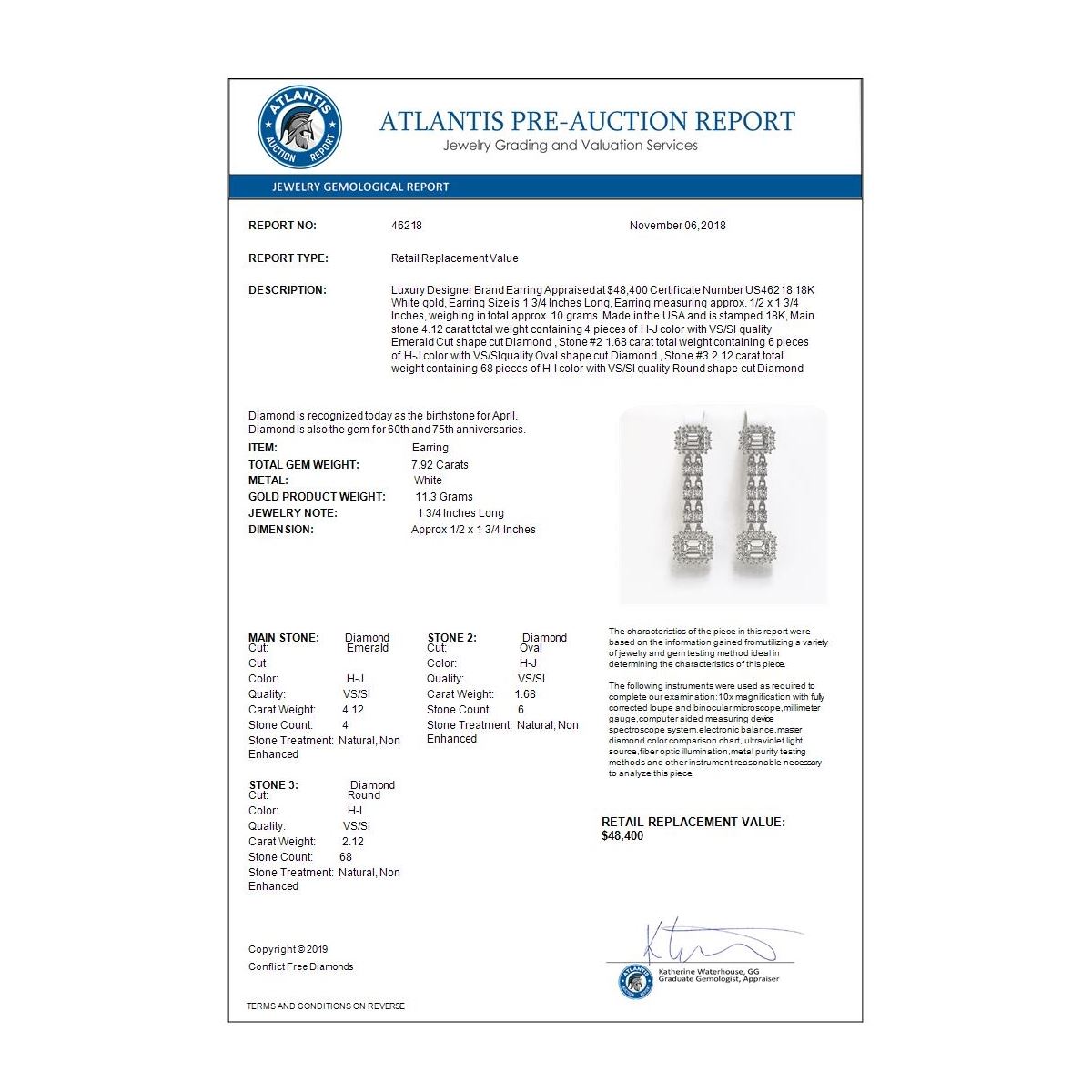 7.92 ctw Emerald Cut & Oval Diamond Earrings 18K White Gold