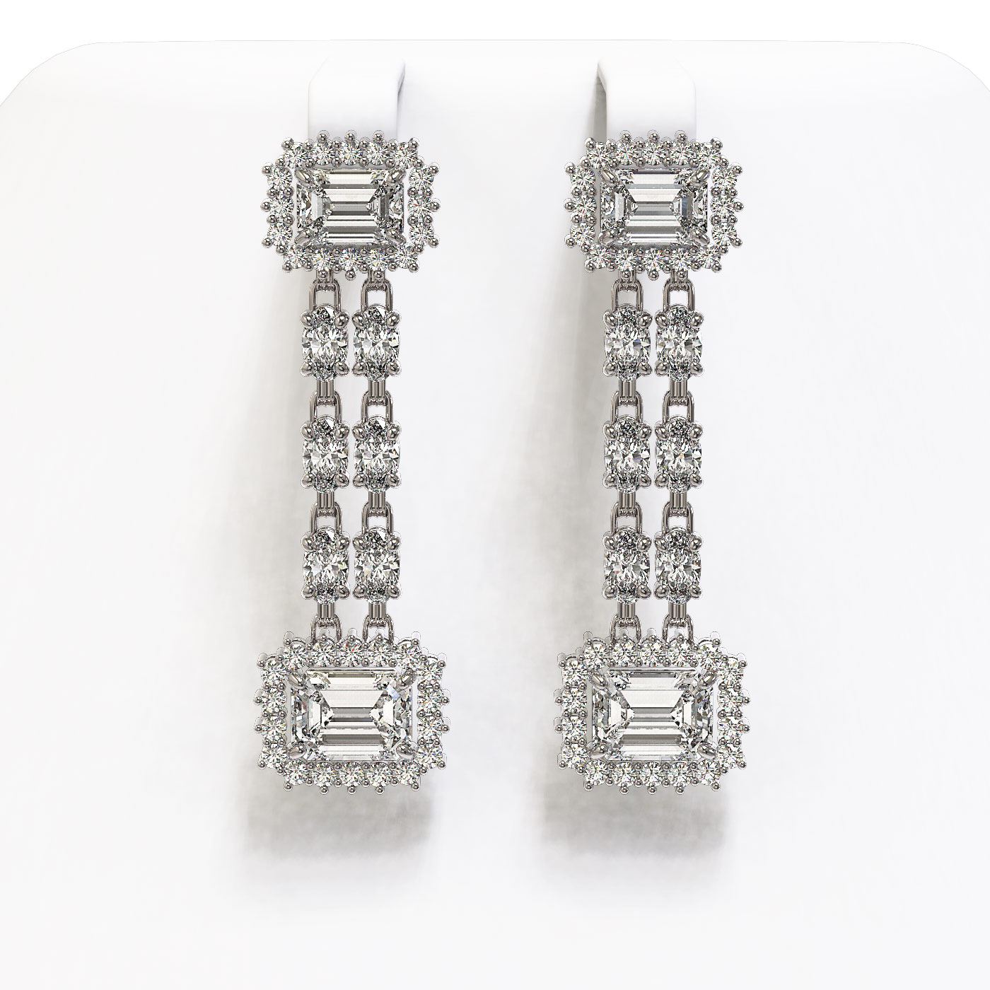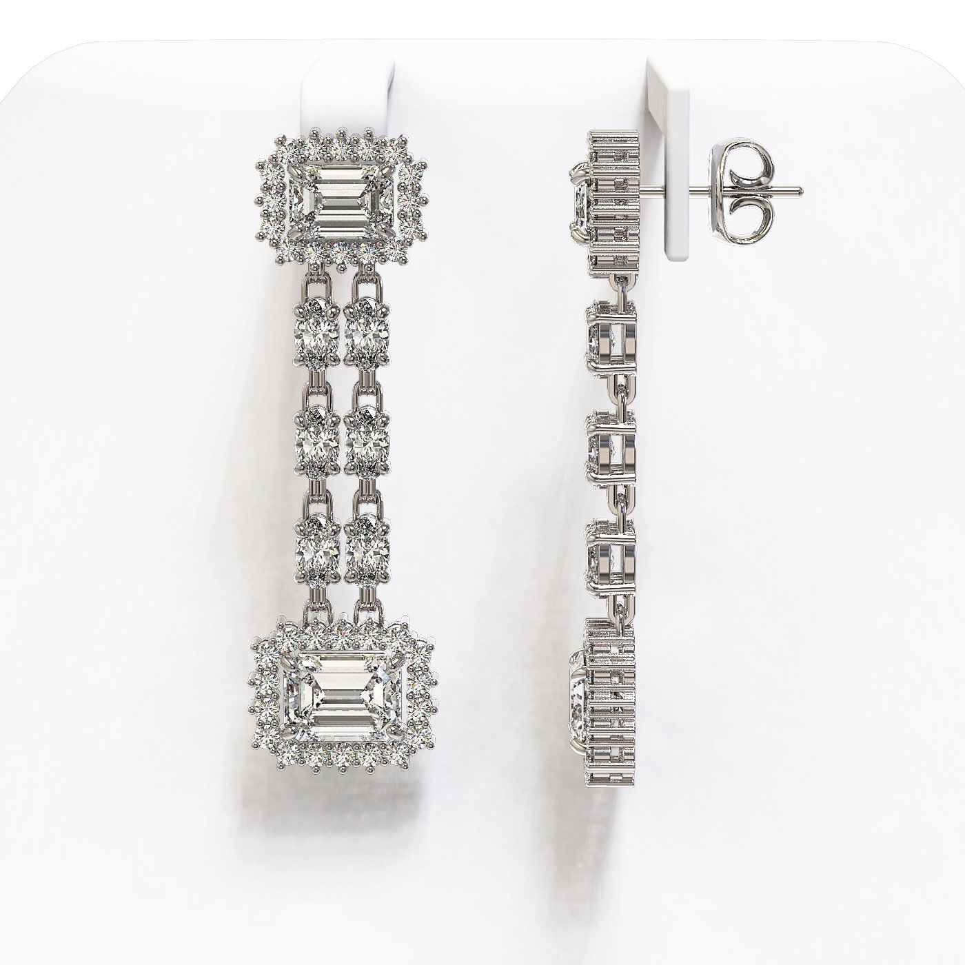 7.92 ctw Emerald Cut & Oval Diamond Earrings 18K White Gold
