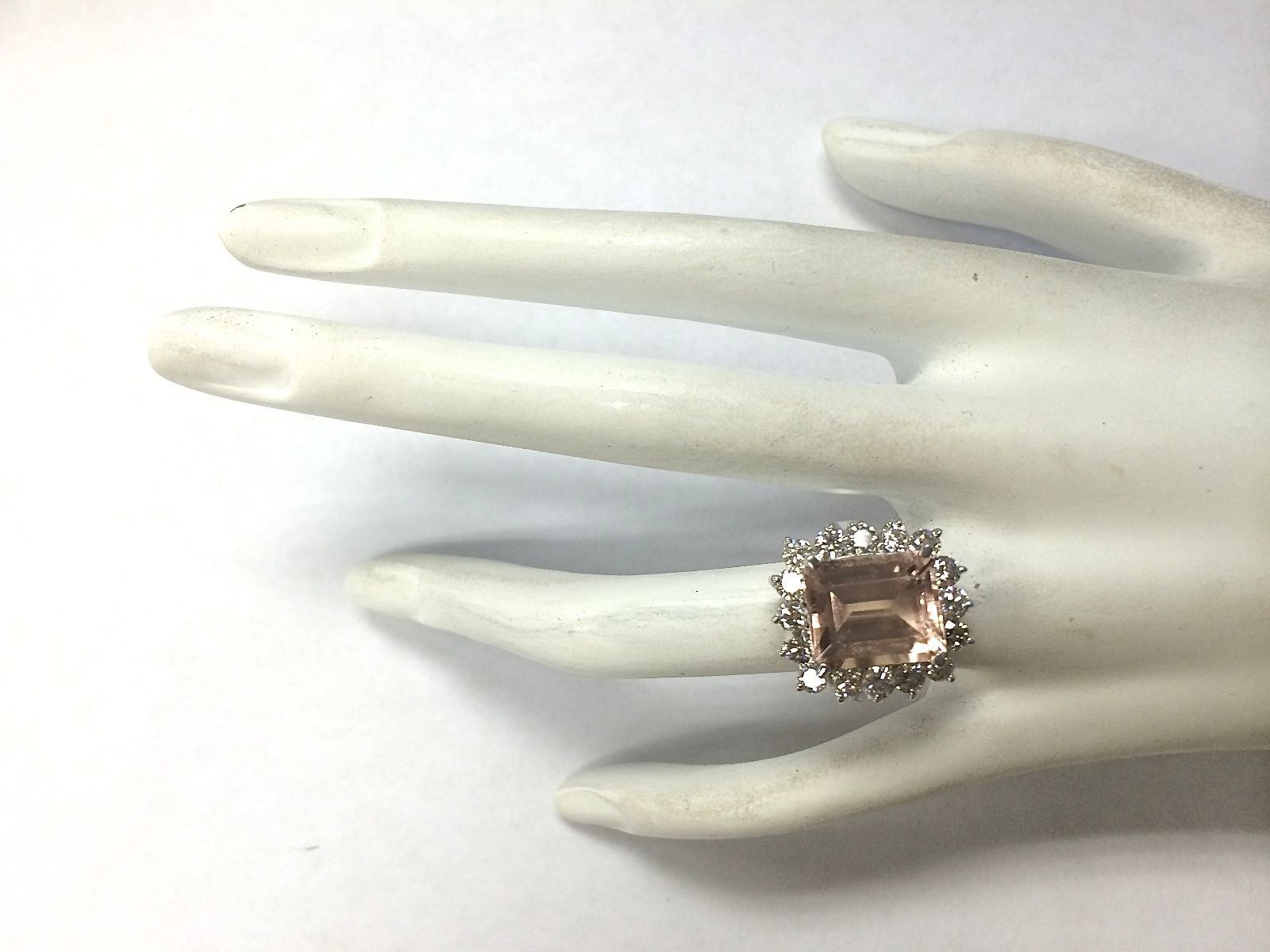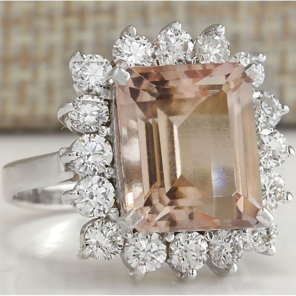 7.92CTW Natural Peach Morganite And Diamond Ring In 14K Solid White Gold