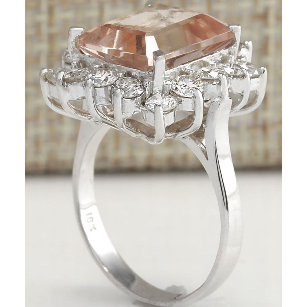 7.92CTW Natural Peach Morganite And Diamond Ring In 18K Solid White Gold