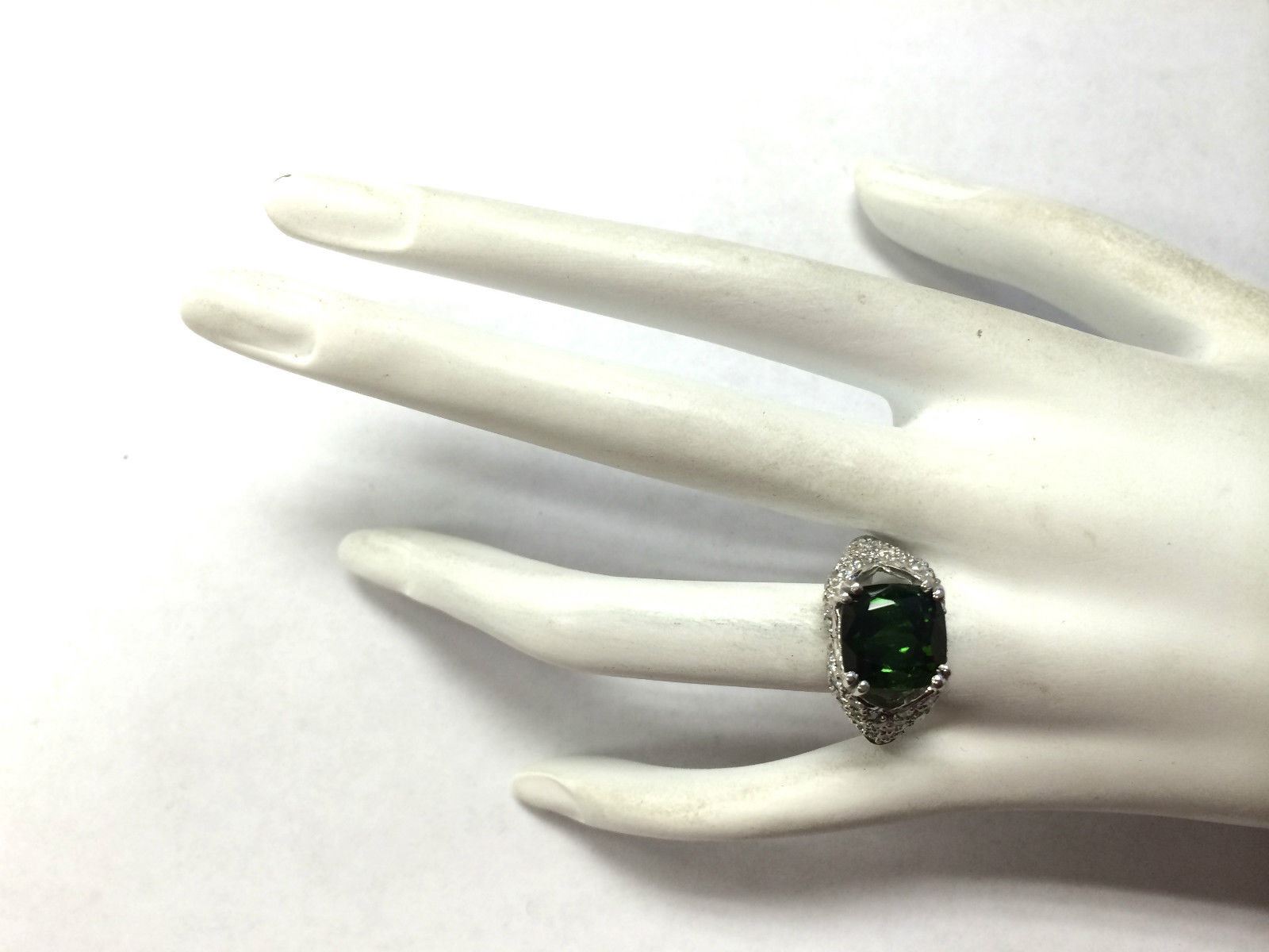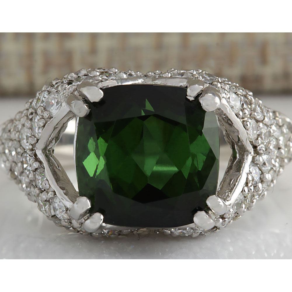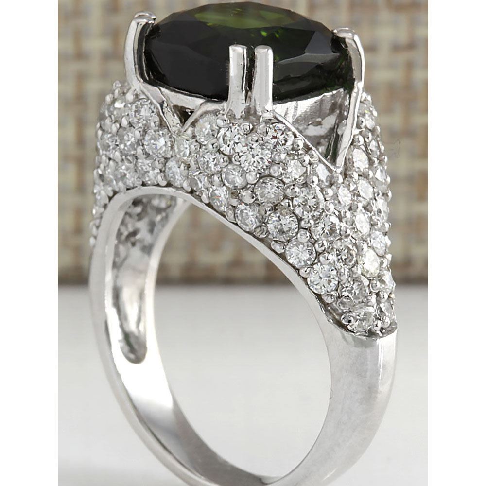 7.93 CTW Natural Green Tourmaline And Diamond Ring 14K Solid White Gold