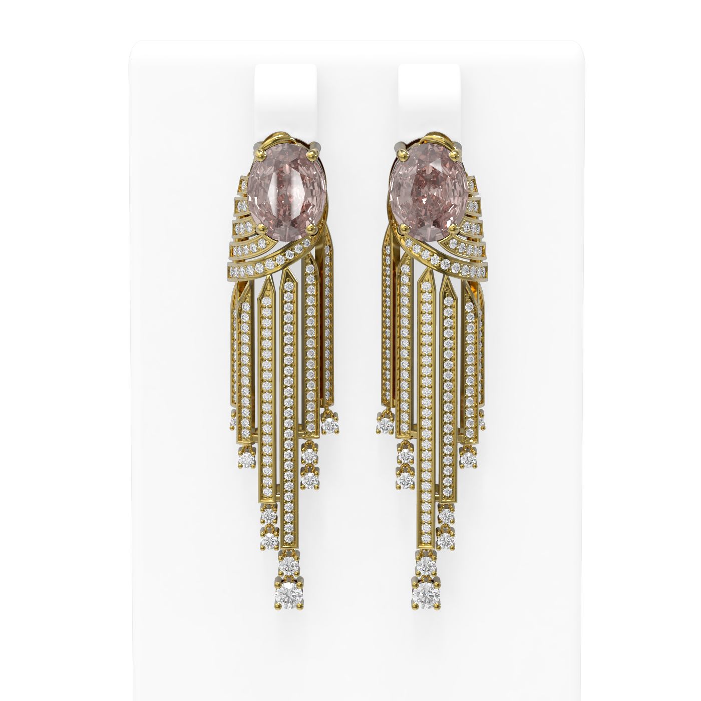 REF-541W8H - SKU: 60979 ---- 7.94 ctw Morganite & Diamond Earrings 18K Yellow Gold