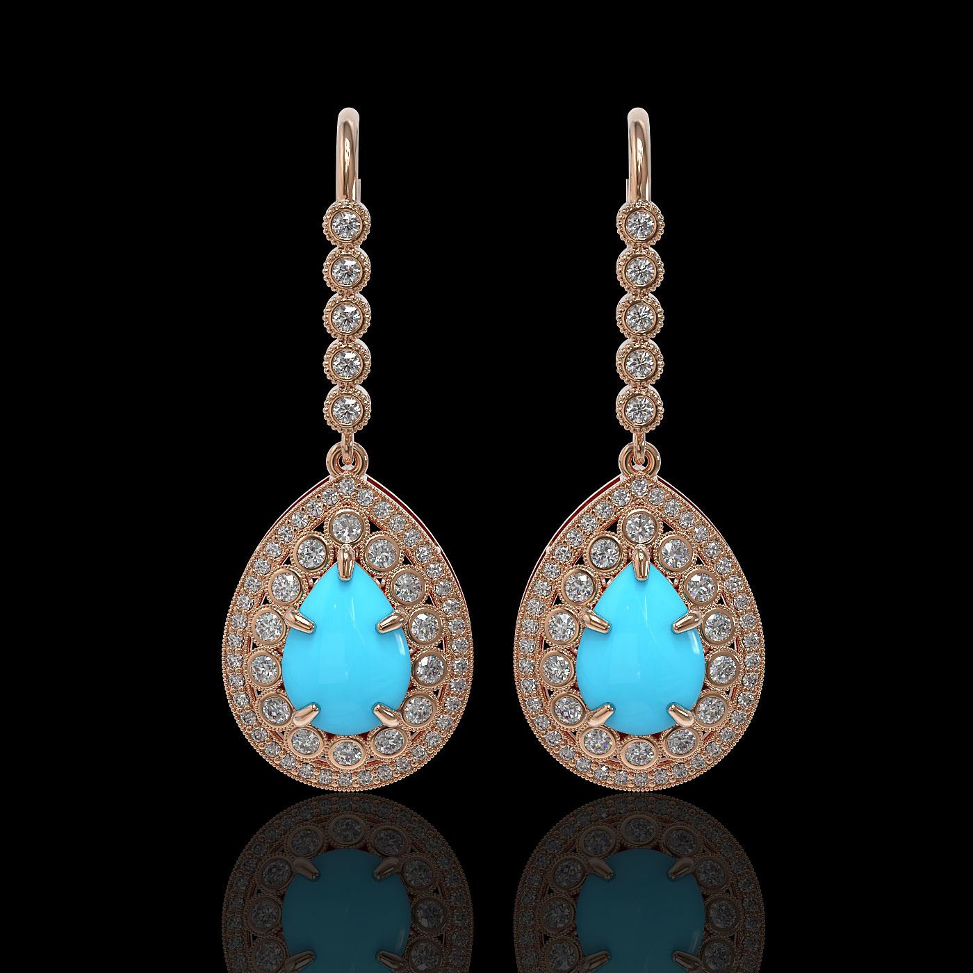 REF-241R5K - SKU: 46147 ---- 7.95 ctw Turquoise & Diamond Victorian Earrings 14K Rose Gold
