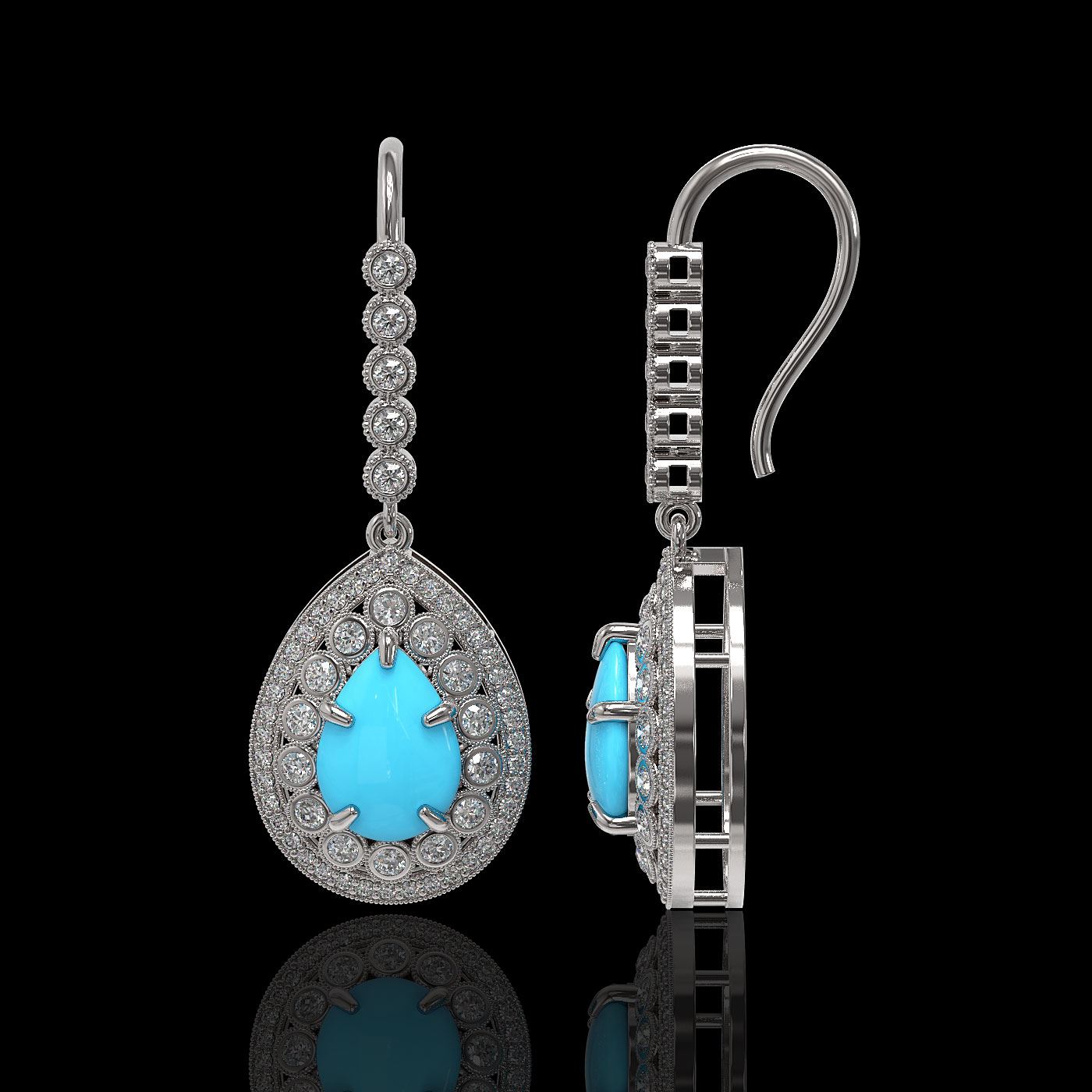 REF-241W5H - SKU: 46146 ---- 7.95 ctw Turquoise & Diamond Victorian Earrings 14K White Gold