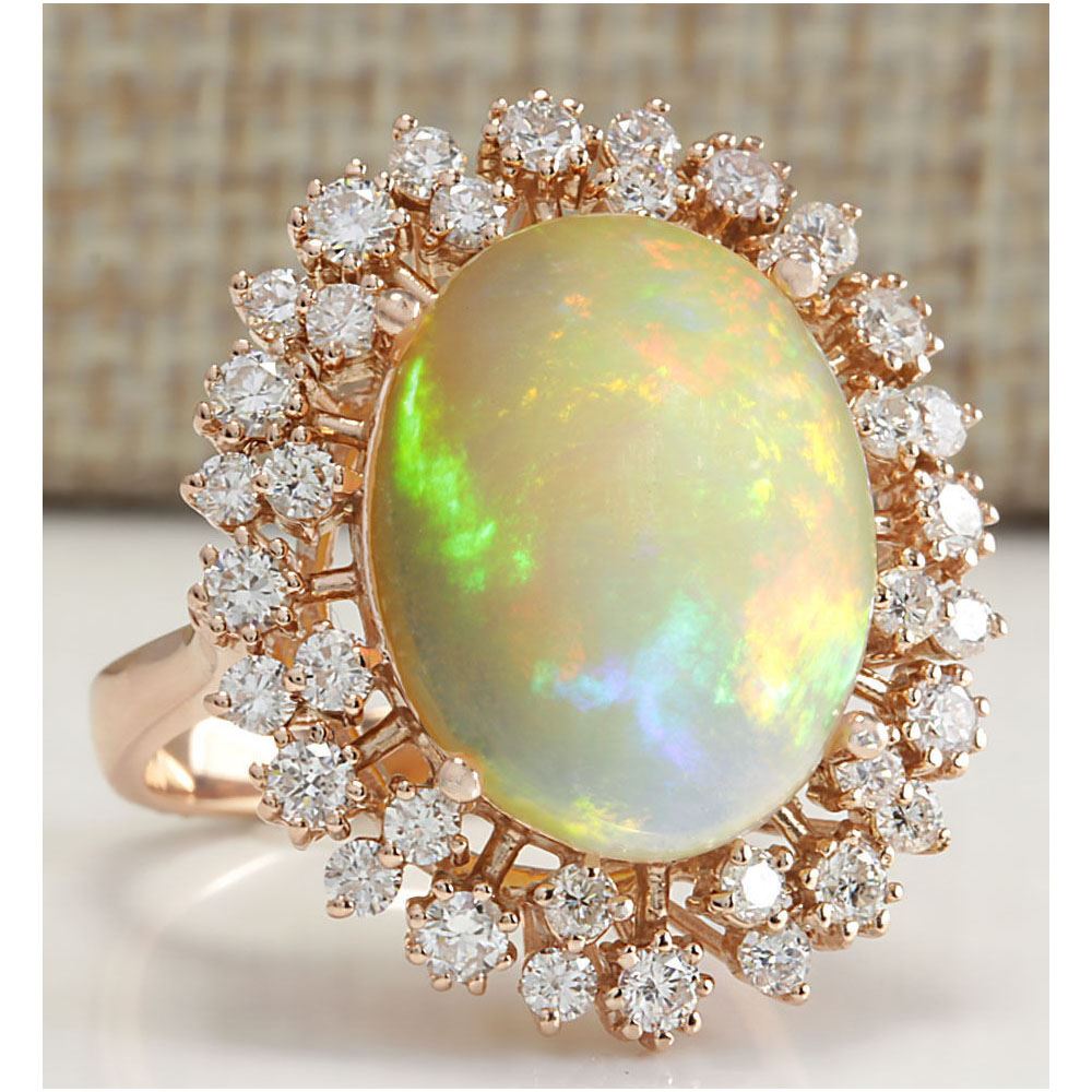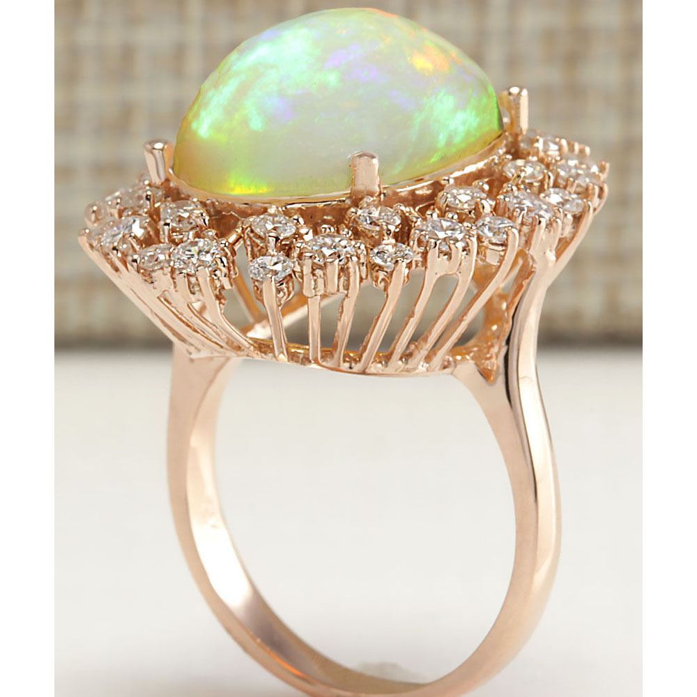 7.99 CTW Natural Opal And Diamond Ring In 14K Rose Gold