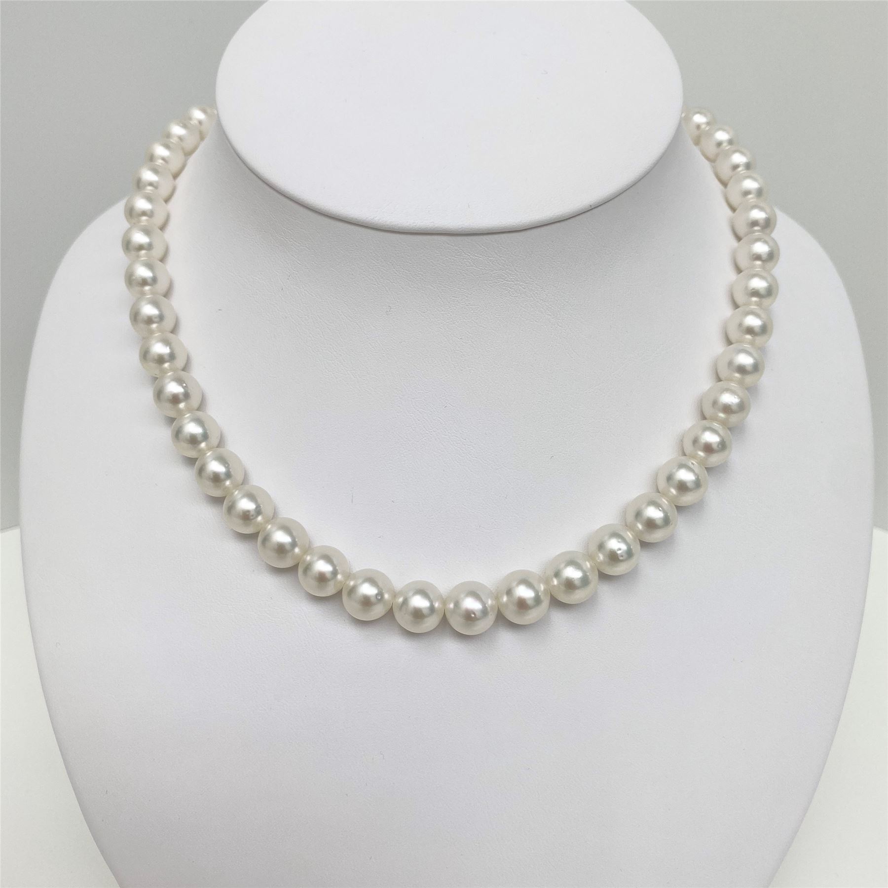 7-9mm South Sea White Round Pearl Necklace with Gold Clasp