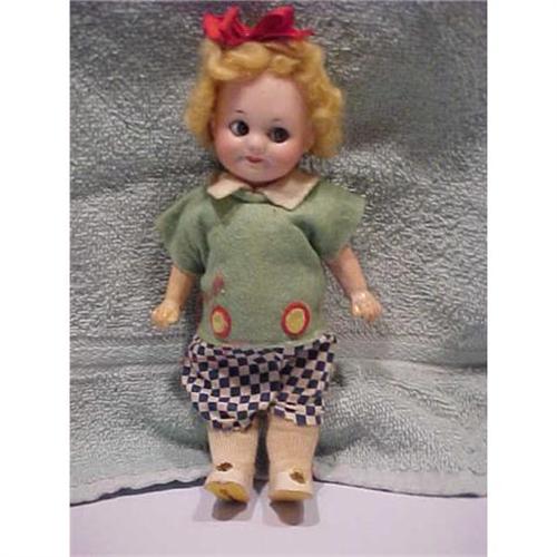 This googly eyed doll is all original. Her shoe is marked Germany on the bottom--see full front pix. The head is bisque and in near mint condition. I see a very faint rub low near neck on one cheek. When displayed it is hard to see. The clothing has some all over age dust but is in reasonably good condition. These dolls never had quality clothing. The wig is the original mohair. Her eyes open and close well. She has the sweetest expression. Body is the typical rough papier mache body the A.M. 323 always have. It is in ok shape with some areas under the clothing missing small spots of paint. Make an offer if not in an auction.