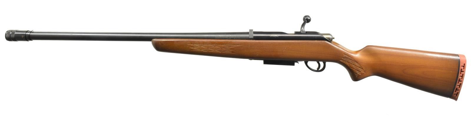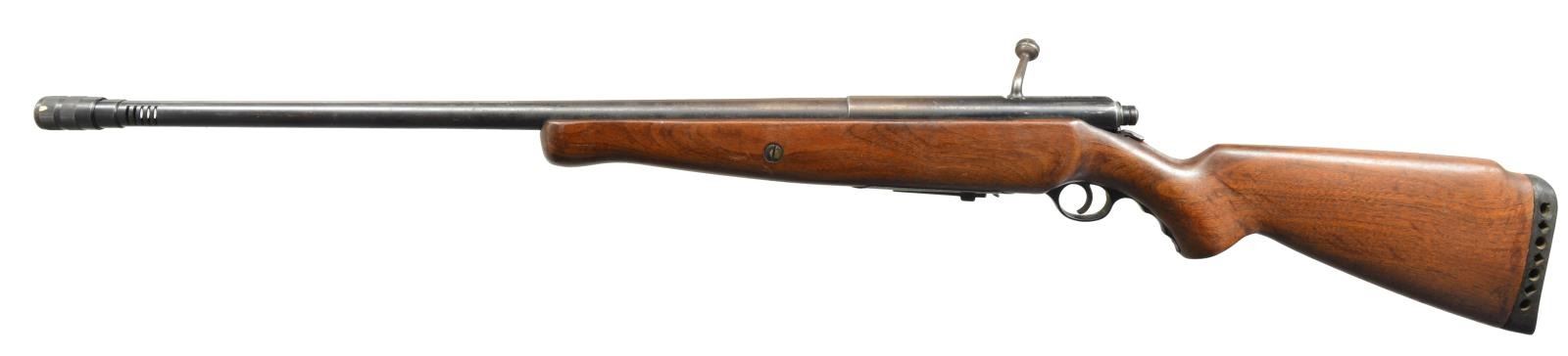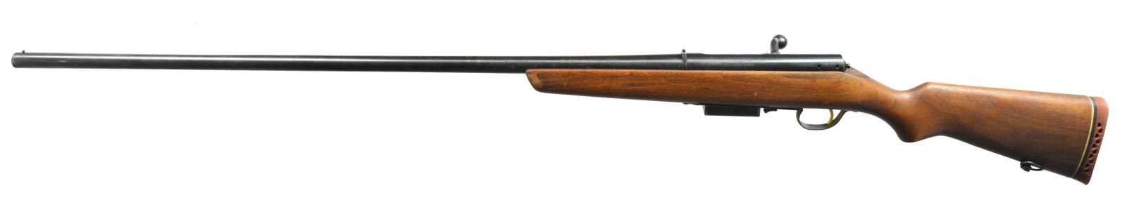 1) MARLIN MODEL 55 "THE ORIGINAL" GOOSE GUN. Cal. 12 Ga., 3". NSN. Bbl. 36" plain w/ fixed Full choke & brass bead. Action features a right side safety & gold finished trigger. Pistol grip walnut stock w/ rear sling swivel, front swivel is removed. LOP: 14" over unmarked red ventilated pad & white line spacer. MAGS: 1 detachable 2 rd. CONDITION: 95% blue showing spots of surface corrosion. Stock shows finish wear, dents, & mildew spots. Bore shows areas pitting w/ ring bulge in choke area. (20-2731/DS). CURIO. 2) WESTERNFIELD MODEL 128 FR. Cal. 12 Ga., 2 3/4". NSN. Bbl. 28" plain w/ fixed Full choke & hexagon steel front sight. Pistol grip stock, LOP: 14 1/2" over Kessler pad. MAGS: none. CONDITION: 80% lightly worn blue showing spots of surface corrosion & light pitting. Stock has worn finish showing scratches & handling marks w/ lg. chip along left side of action. Bore shows some plastic fouling. (20-2754/DS). CURIO. 3) J. STEVENS MODEL 54. Cal. 410 Ga., 2 1/2". NSN. Bbl. 26" plain w/ fixed Full choke & brass bead. Single shot manually cocked action w/ knurled cocking piece. Finger groove forearm pistol grip stock w/ steel buttplate. CONDITION: 80% dull lightly faded blue showing spots of surface rust. Refinished stock showing scratches & marks. Bore shows spots of rust & pitting w/ light ring in choke area. (20-2756/DS). CURIO. 4) WESTERNFIELD MODEL M175. Cal. 20 Ga., 2 3/4" & 3". S# 1245307. Bbl. 28" plain w/ C-Lect-Choke & steel bead. Sliding safety on cocking piece. Pistol grip Monte Carlo stock w/ original pad. MAGS: 1 detachable 2 rd. CONDITION: over 95% blue showing sm. spots of corrosion & handling marks. Stock has good finish. Good bright bore. (20-2759/DS). MODERN. 5) STEVENS MODEL 58D. Cal. 12 Ga., 2 3/4". S# B439449. Bbl. 25" plain w/ adj. choke & steel bead. Right side safety. Hardwood pistol grip stock w/ pressed checkering & original pad. MAGS: 1 detachable 2 rd. CONDITION: 98% blue. Stock has lightly worn finish showing sm. marks. Good bright bore. (20-2770/DS). MODERN. 6) MOSSBERG MODEL 190. Cal. 16 Ga., 2 3/4". NSN. Bbl. 26" plain w/ slotted porting, adj. choke & steel bead. Schnabel tipped pistol grip Monte Carlo stock w/ original buttplate & added swivels. MAGS: 1 detachable 2 rd. CONDITION: 80% lightly faded blue. Stock has worn finish showing scratches, dents & marks. Good bright bore. (20-2772/DS). CURIO. 7) MOSSBERG MODEL 190. Cal. 16 Ga., 2 3/4". NSN. Bbl. 26" plain w/ slotted porting & adj. choke. Front bead is missing. Schnable tipped pistol grip Monte Carlo stock w/ original black pad. MAGS: 1 detachable 2 rd. CONDITION: 50% dull faded blue showing surface corrosion. Stock shows wear w/ dents, gouges, scratches & marks. Bore is generally bright showing pitting near choke. (20-2775/DS). CURIO. $500-750.