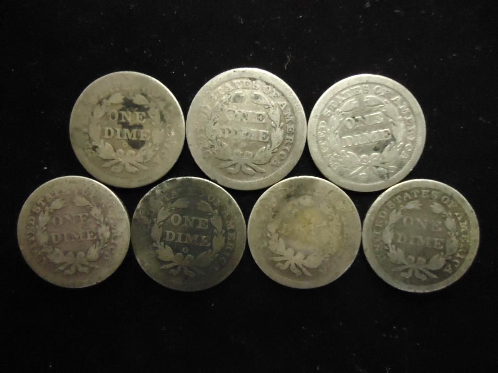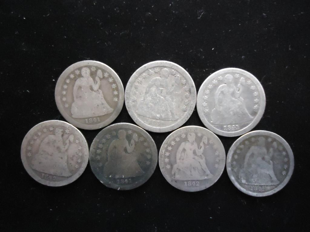 7 ASSORTED 1840'S SEATED LIBERTY DIMES