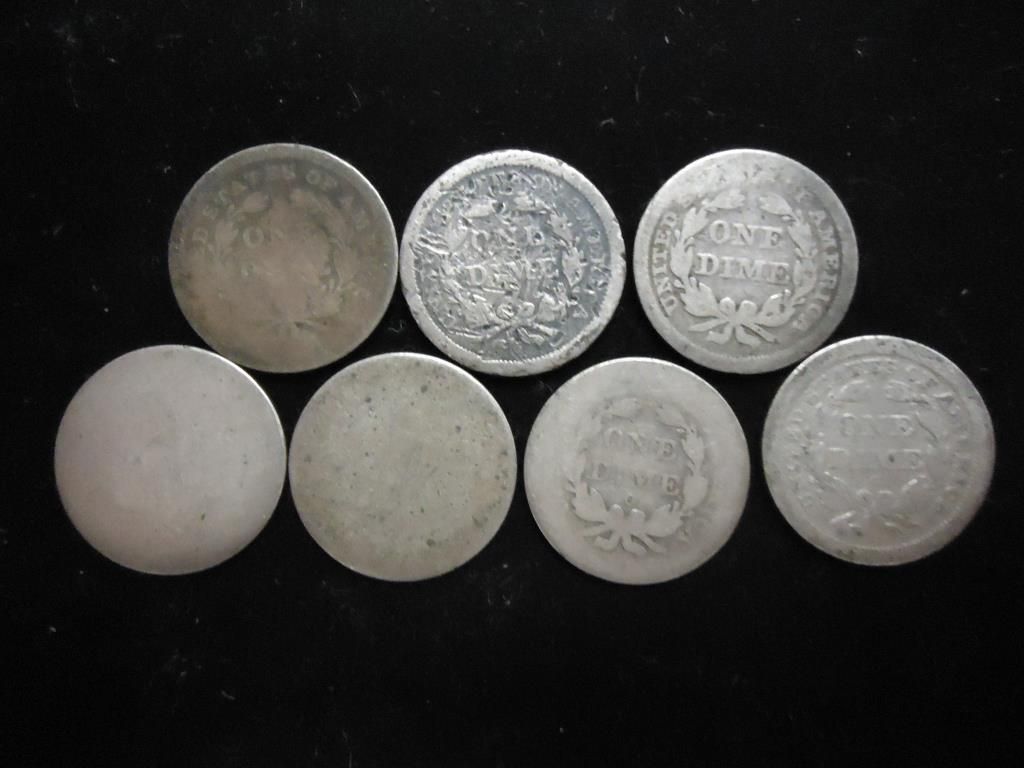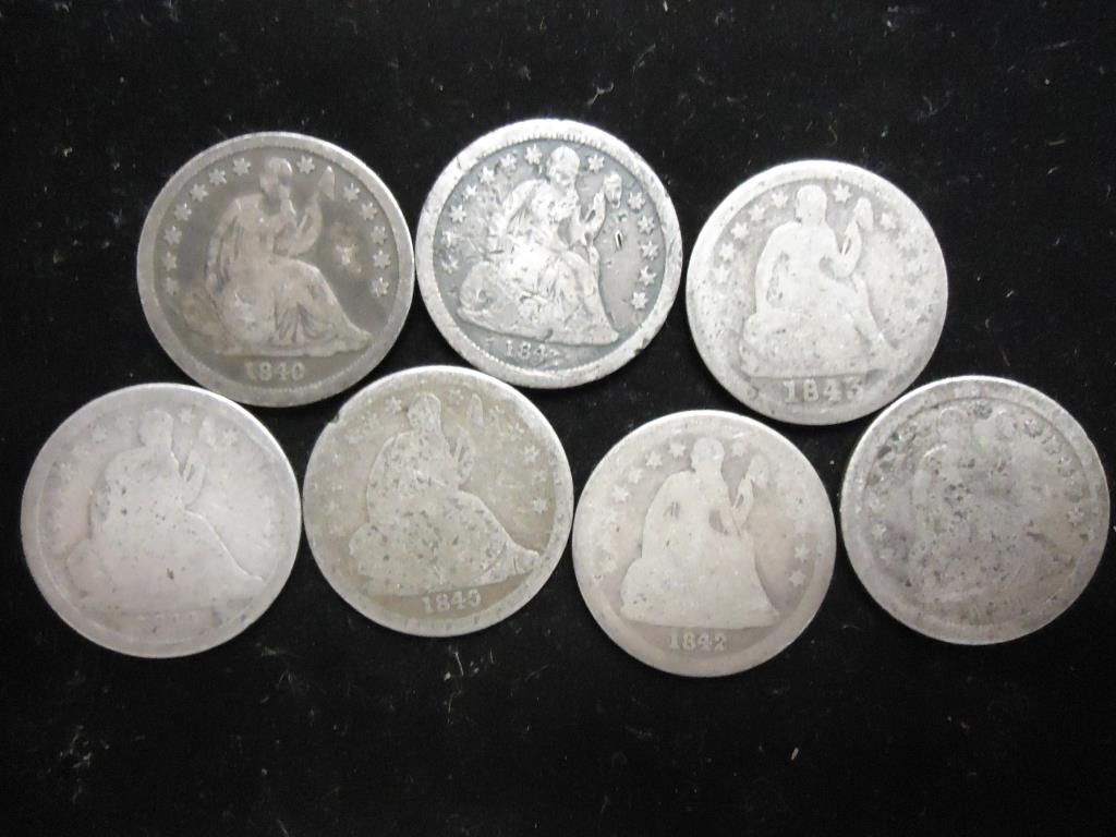 7 ASSORTED 1840'S SEATED LIBERTY DIMES