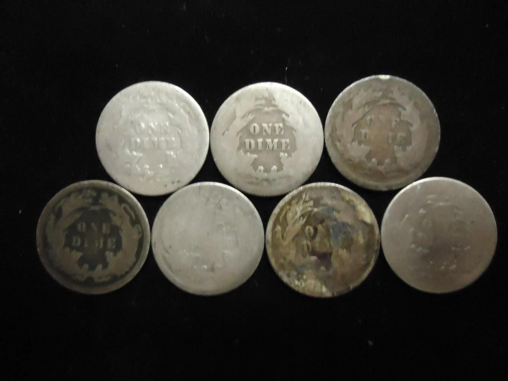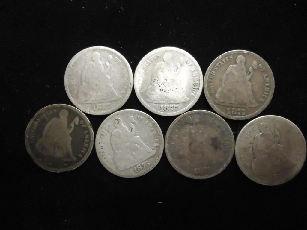 7 ASSORTED 1870'S SEATED LIBERTY DIMES