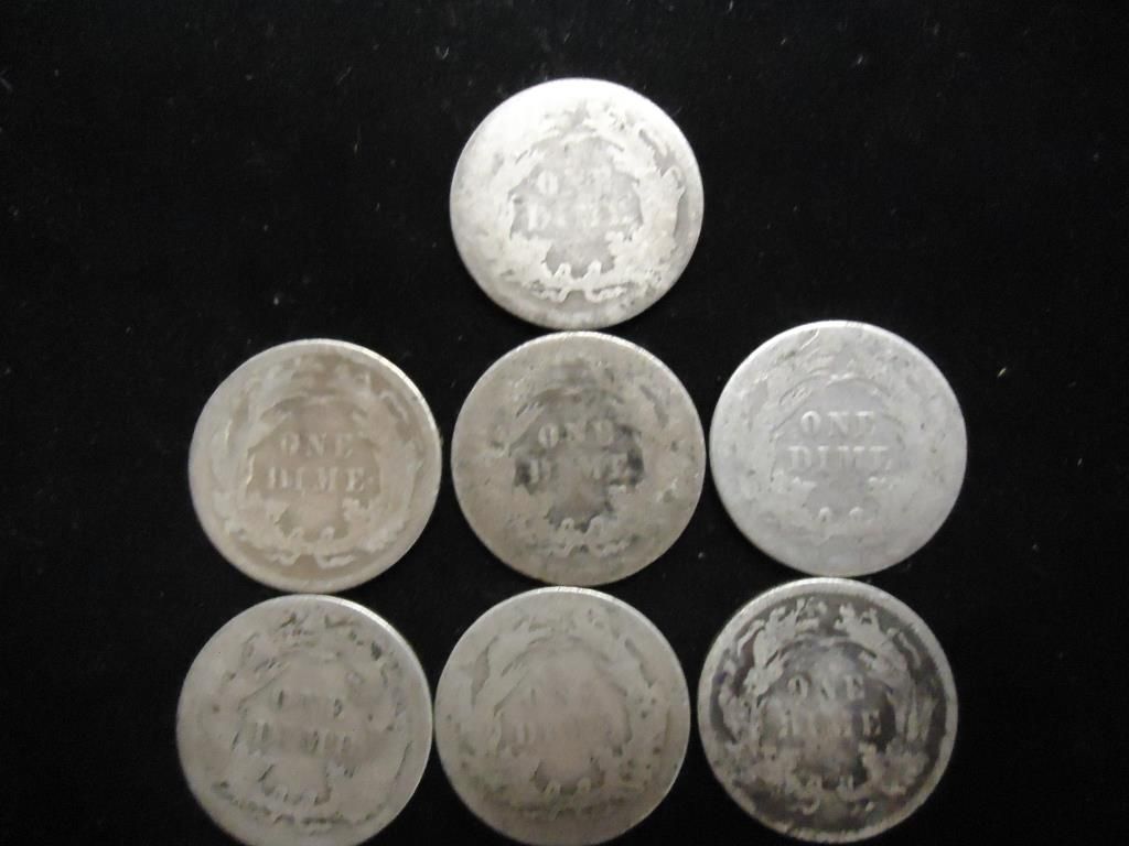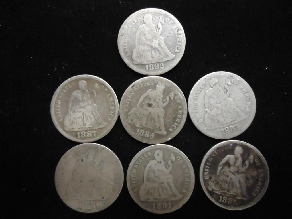 7 ASSORTED 1880'S & 90'S SEATED LIBERTY DIMES