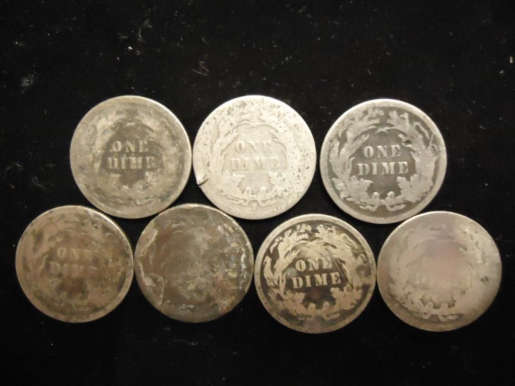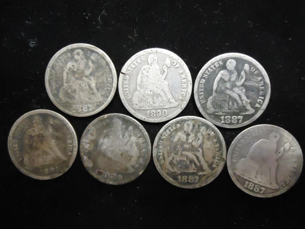 7 ASSORTED 1880'S & 90'S SEATED LIBERTY DIMES