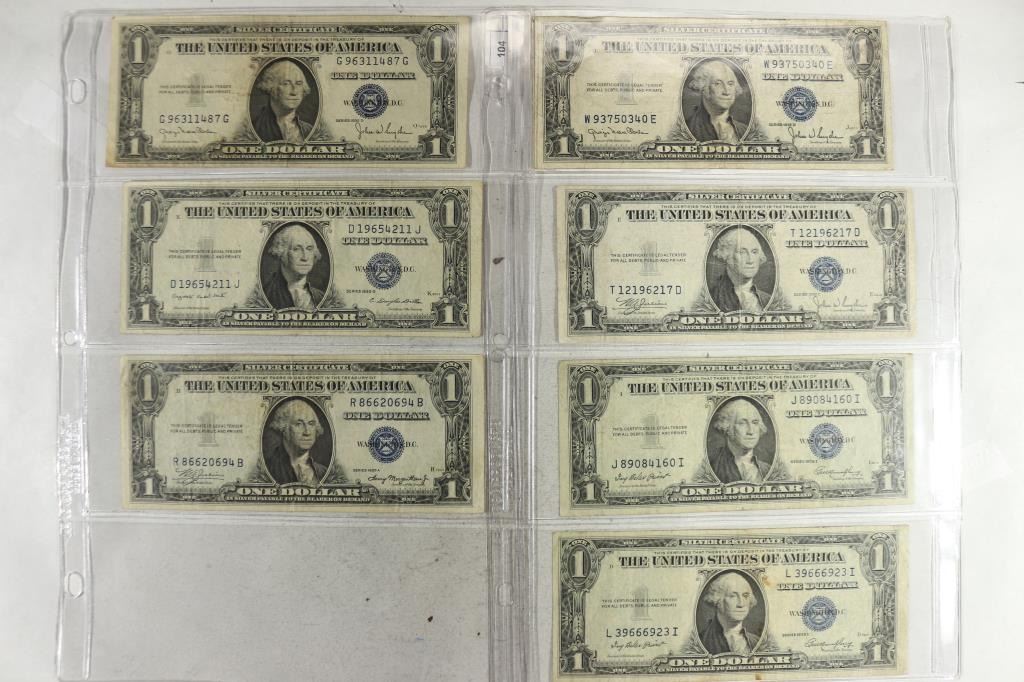 7 ASSORTED 1935 $1 SILVER CERTIFICATES